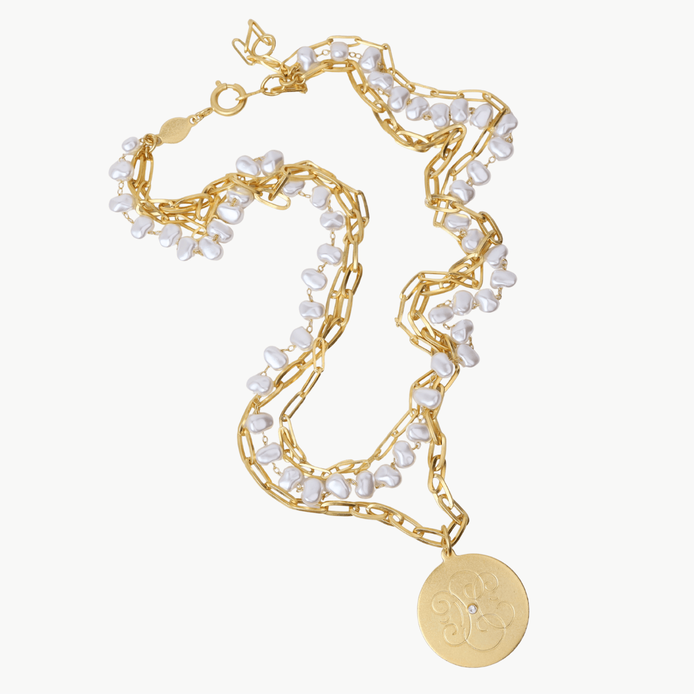 NKL-JM Multi Chain & Pearl with Scroll Pendant Necklace