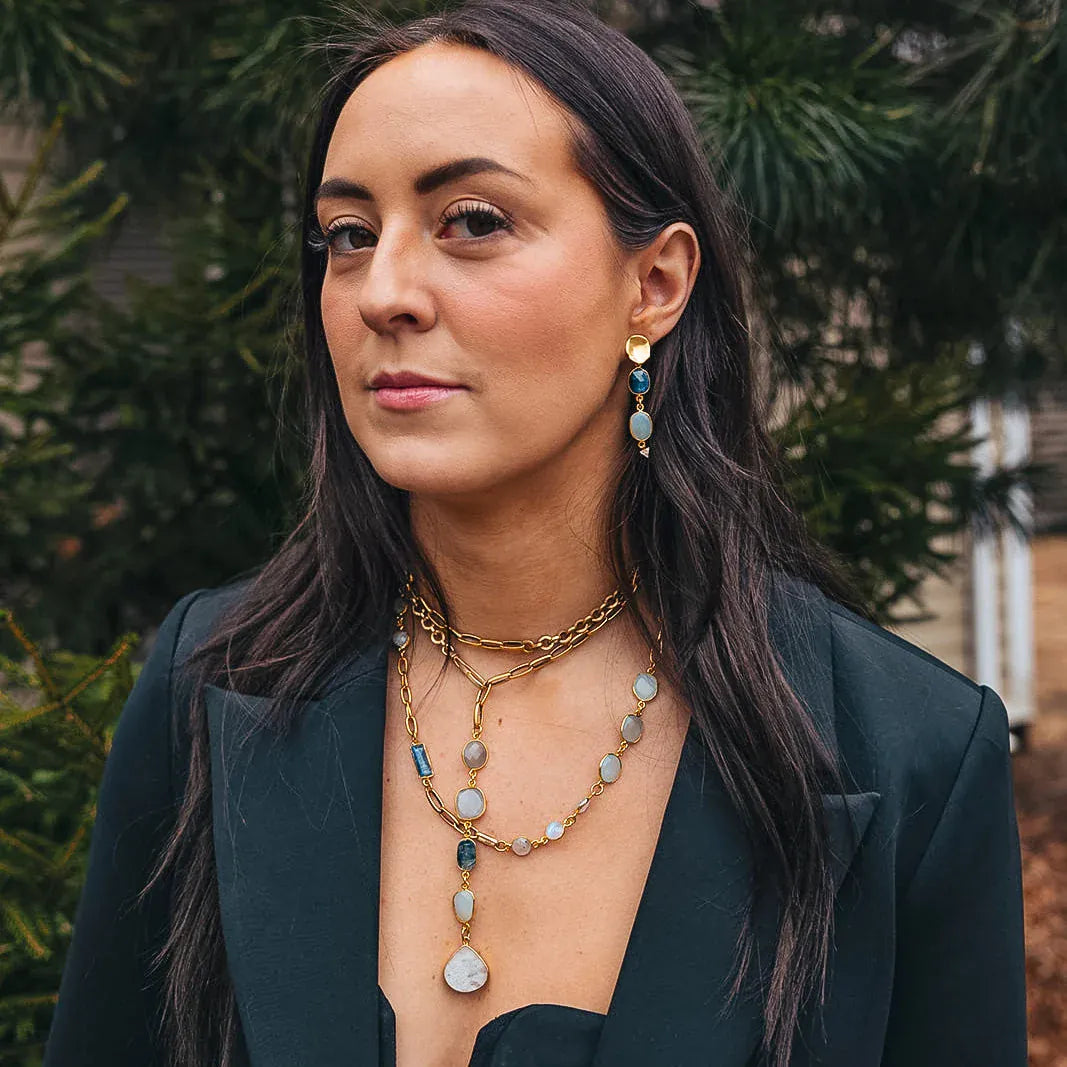 Kyanite, Moonstone and Chalcedony Gold Lariat Necklace