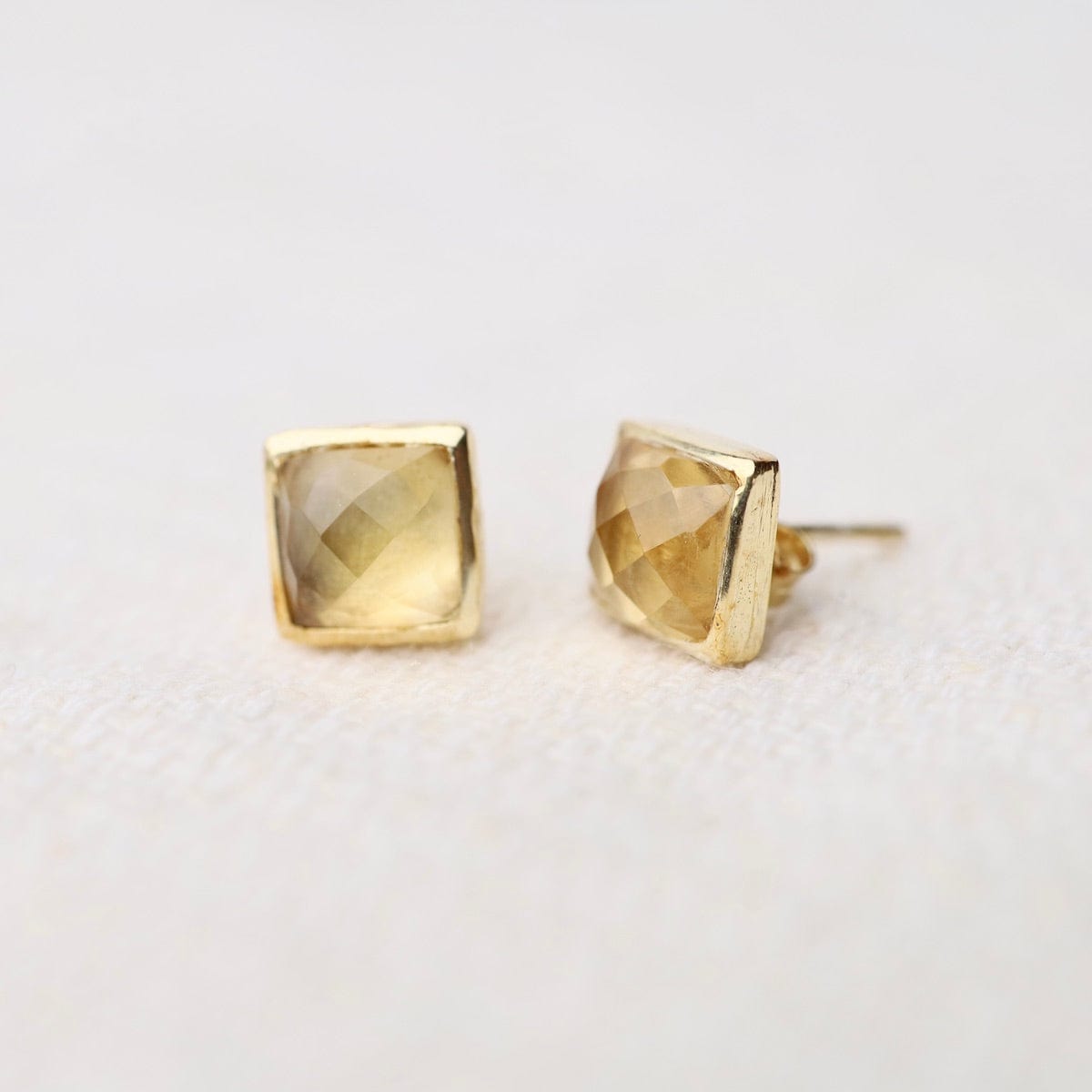 Square cut semi-precious stone stud earrings can go from gym to cocktail party without missing a beat. Set in 24K gold vermeil , choose from a variety of stones. These are light enough to wear all day long, and the perfect size on almost everyone.