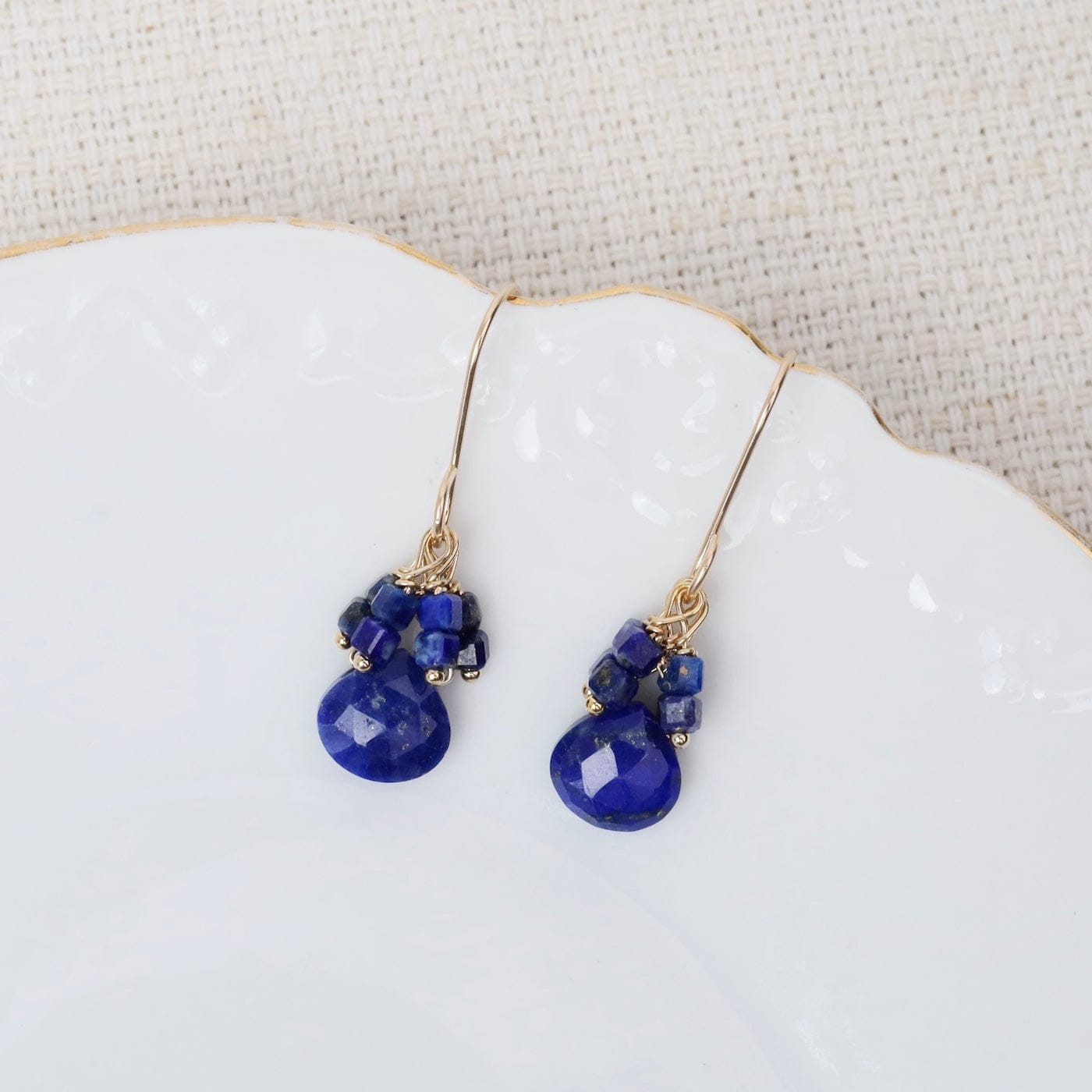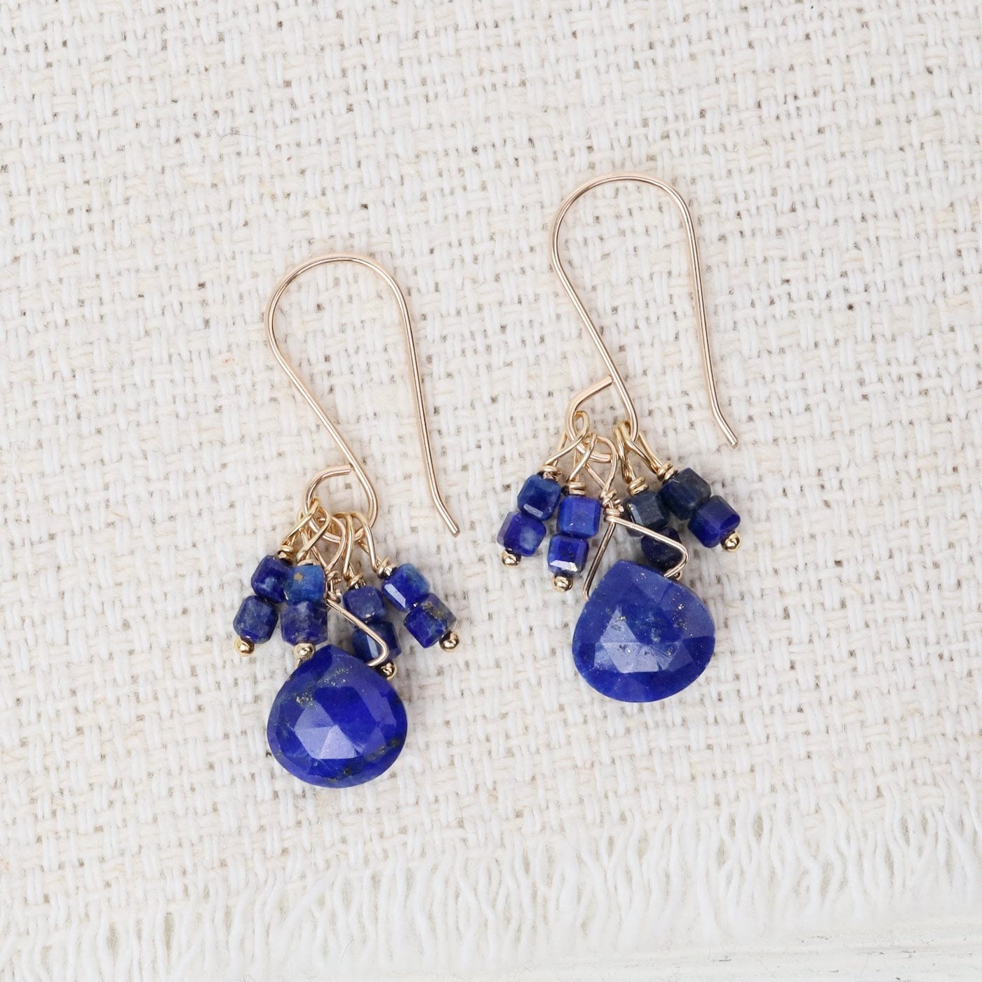 Lapis Briolette & Lapis Cluster Gold Fill Earrings