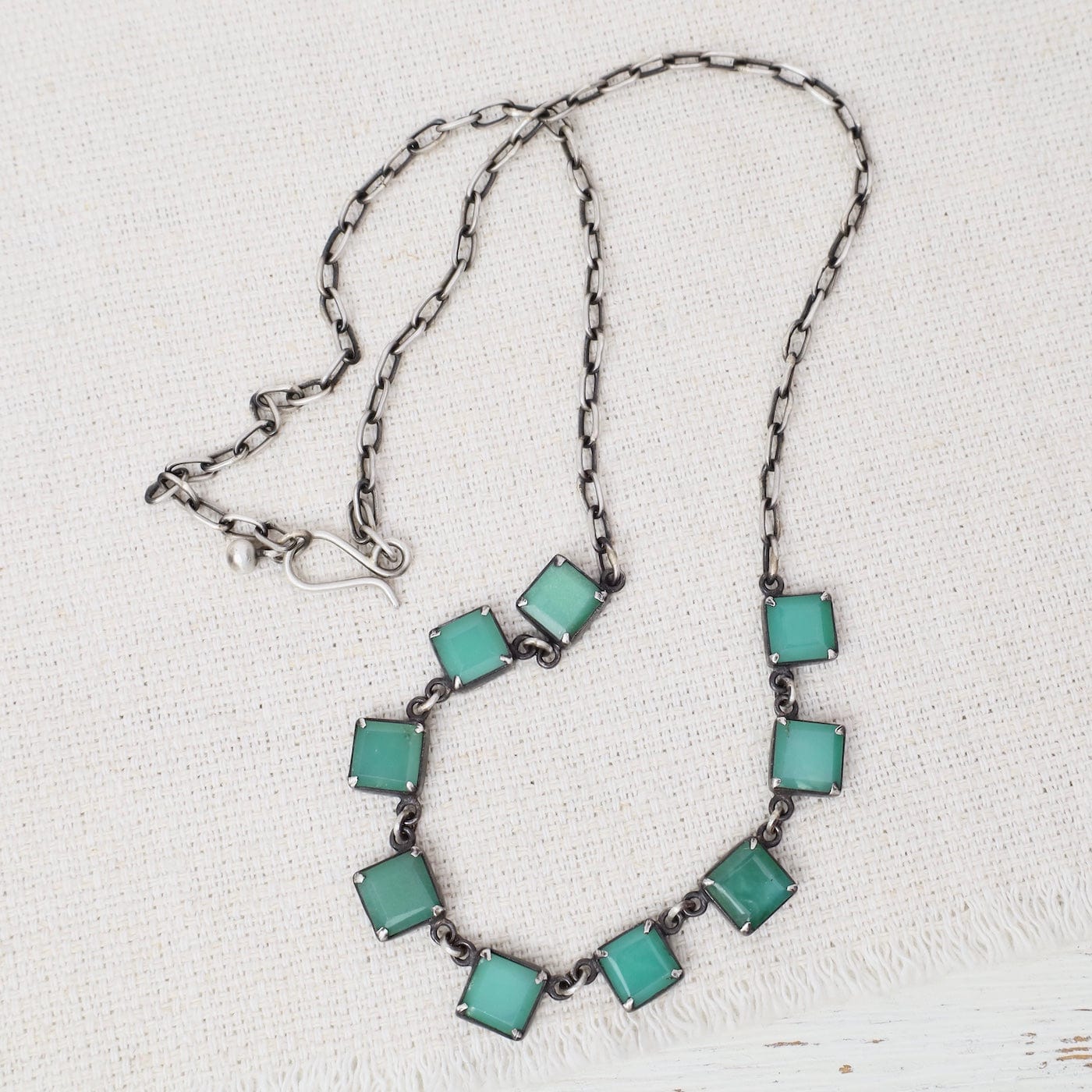 Faceted square chrysoprase gemstones are hand-set in oxidized sterling silver and linked together for a luminous, vintage-inspired look. The adjustable length makes it perfect for layering or wearing solo.