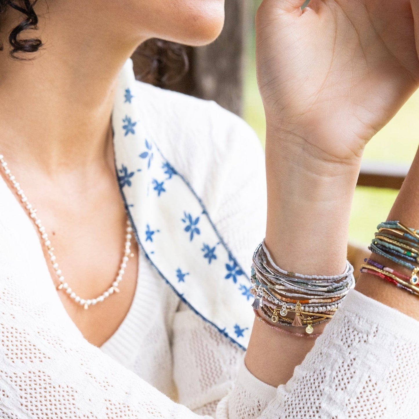 Bracelet becomes a necklace & Ta-Da! There is magic in simplicity. Meet your new go-to wrap, a three-in-one piece that effortlessly converts from a necklace to a bracelet to an anklet. Perfect to wear alone or stack and layer. A timeless accent that enhances your personal style.