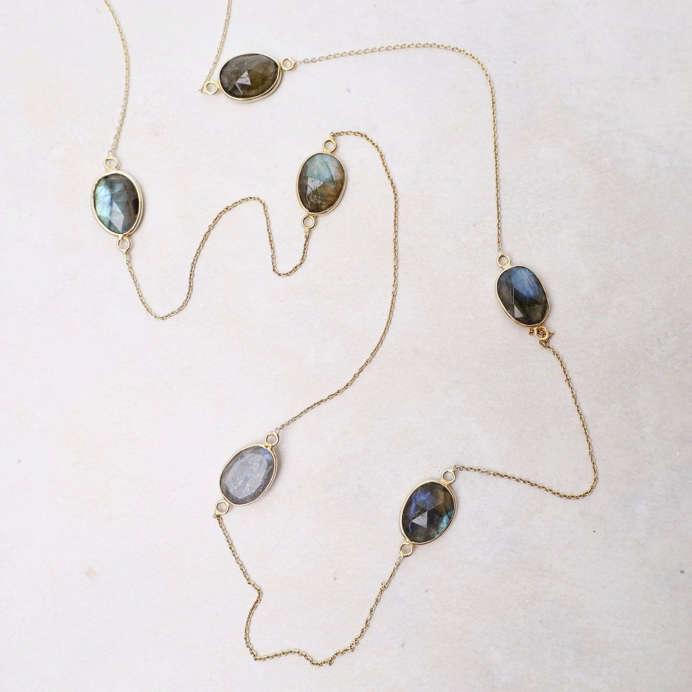 Long Stone Station Necklace in Gold Vermeil & Labradorite