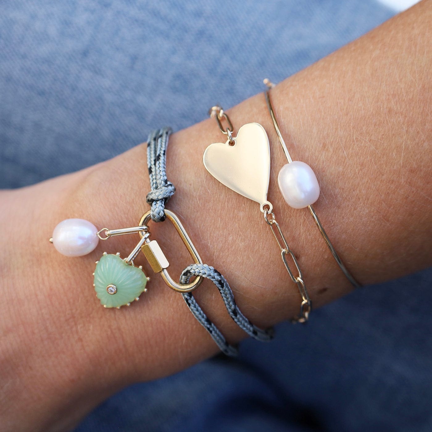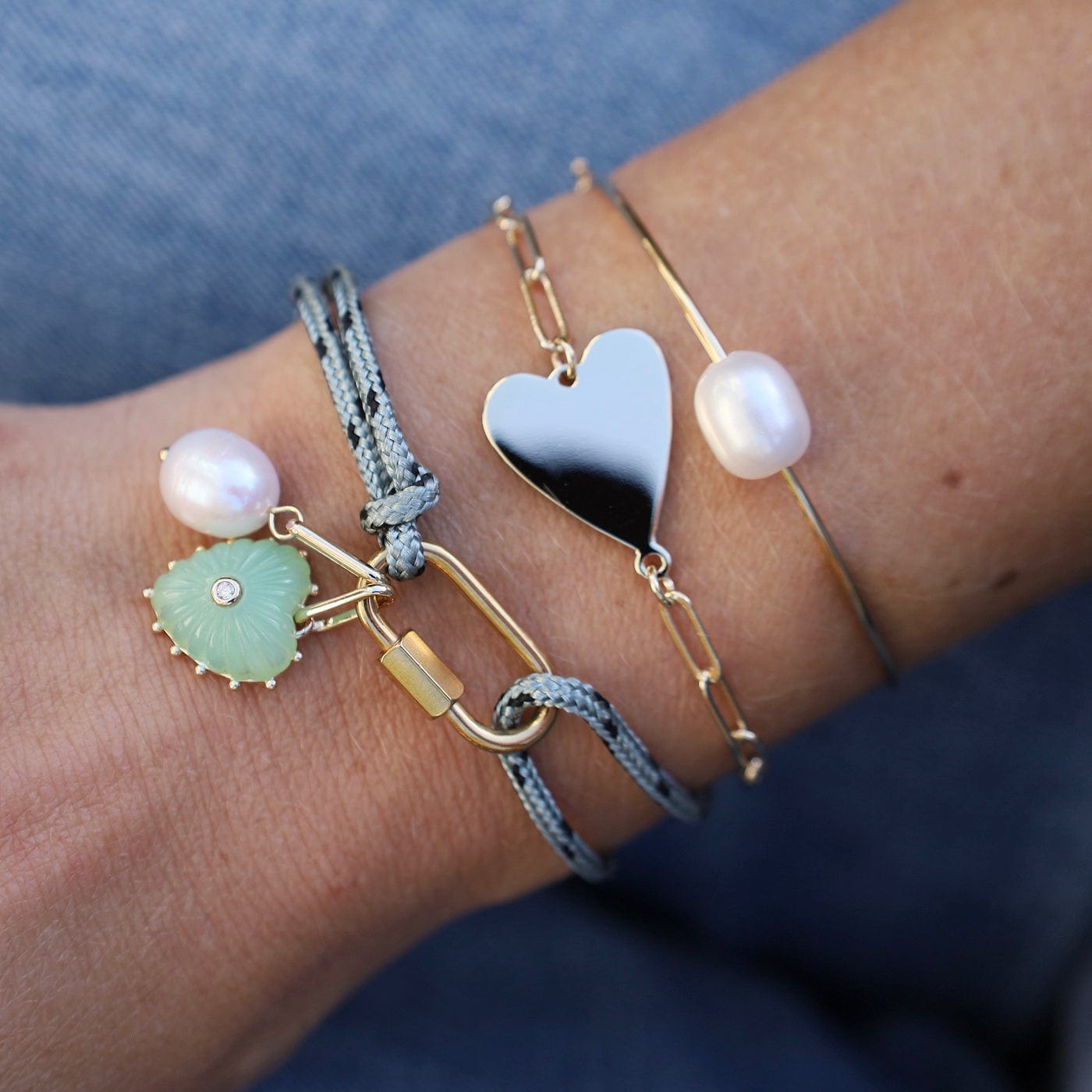 Add a touch of rugged sophistication to your stack with this Stainless Steel Grey Rope Carabiner Bracelet. The adjustable grey rope band is accented by a sleek gold plated stainless steel carabiner clasp, blending industrial style with everyday wearability. Crafted for durability and designed to hold its shape, this bracelet makes a modern statement on its own or layered with your favorite pieces.