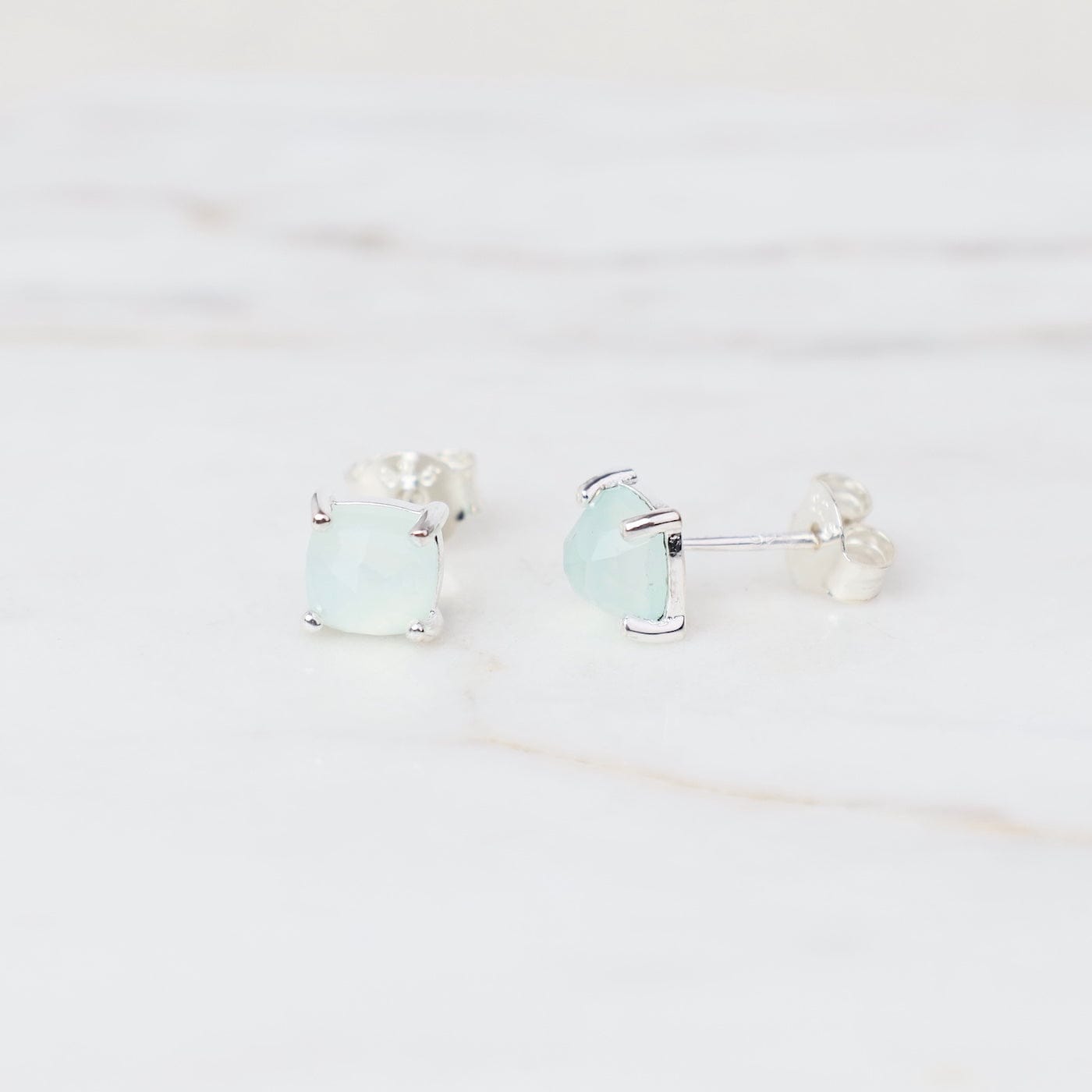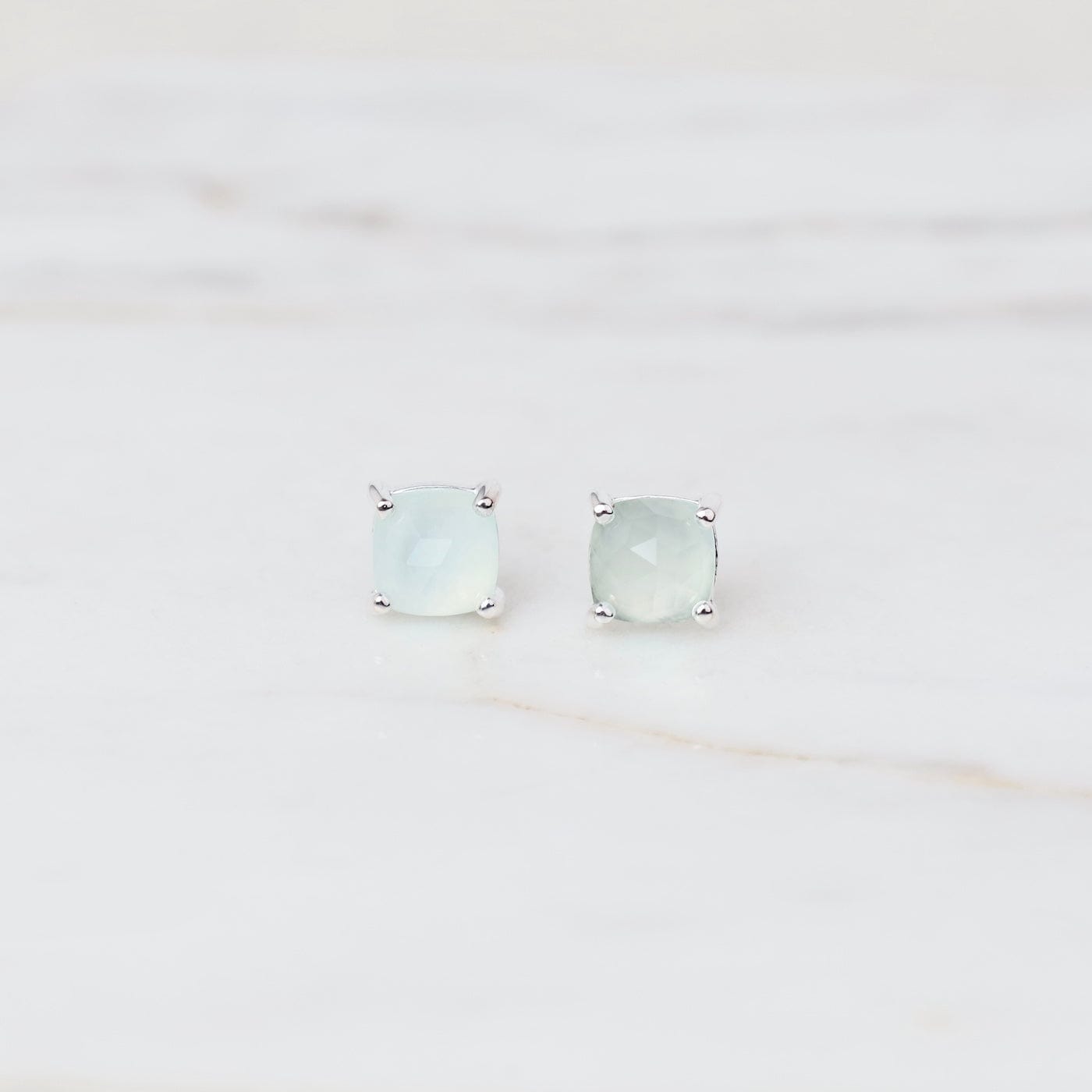 EAR Prong Set Rose Cushion Cut  Aqua Chalcedony Stud Earrings
