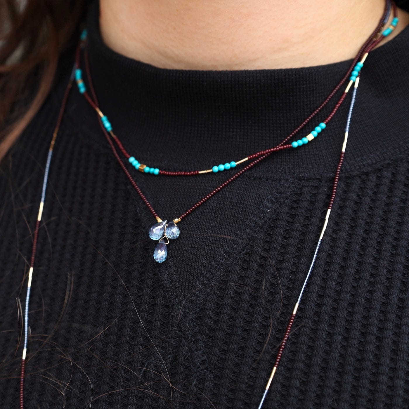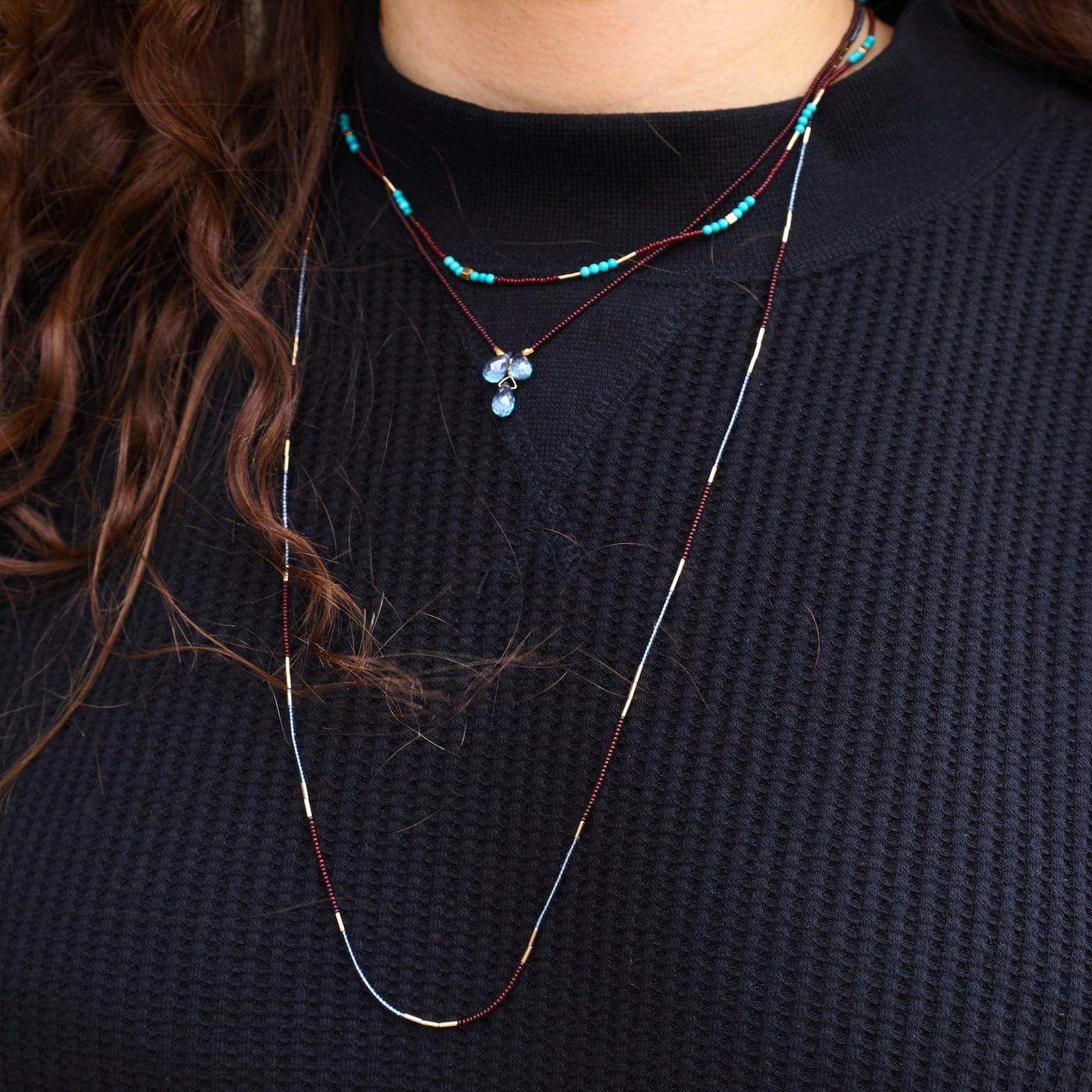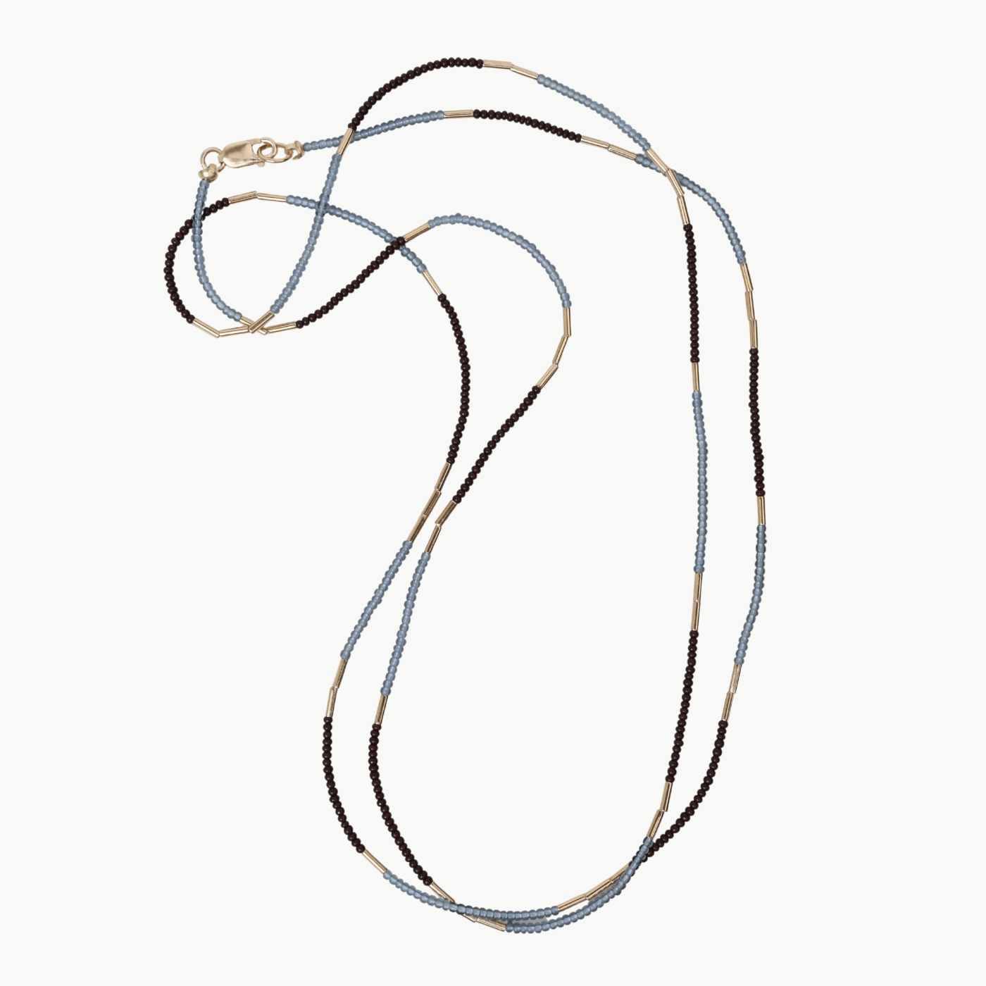 A warm-meets-cool palette of rich brown and soft grey seed beads, accented with sleek gold vermeil for a refined, effortless look. Lightweight and versatile, perfect for layering or wearing solo.