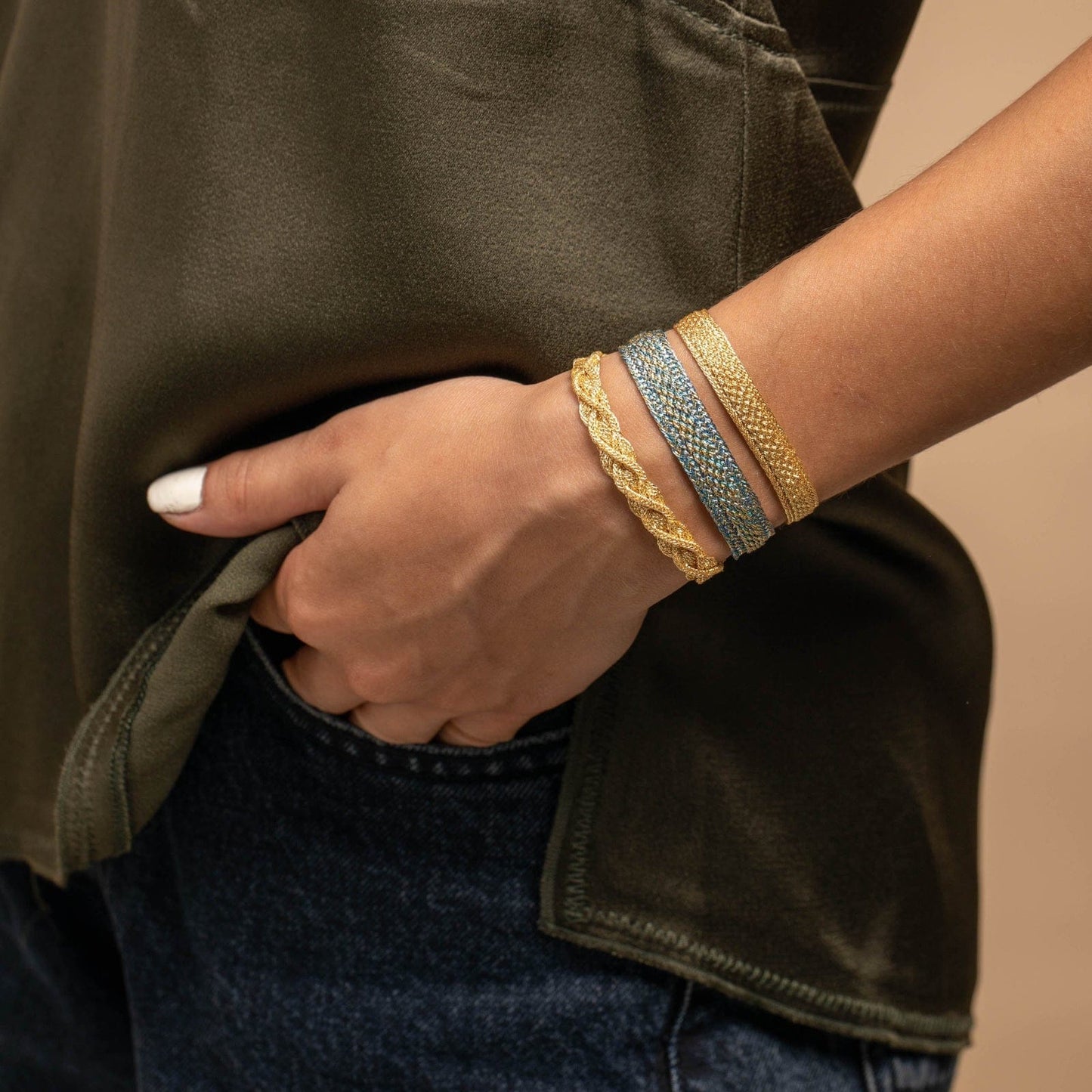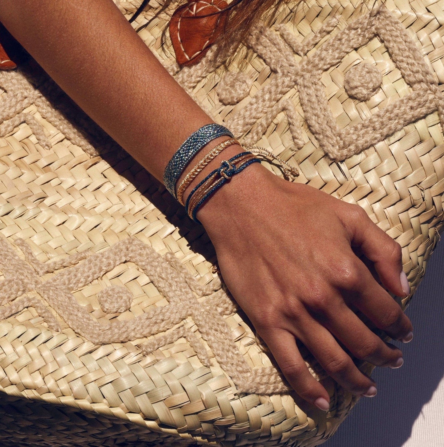 Add a pop of color with the Izy bracelet. This piece merges two delightful tones of blue denim and elegant gold.