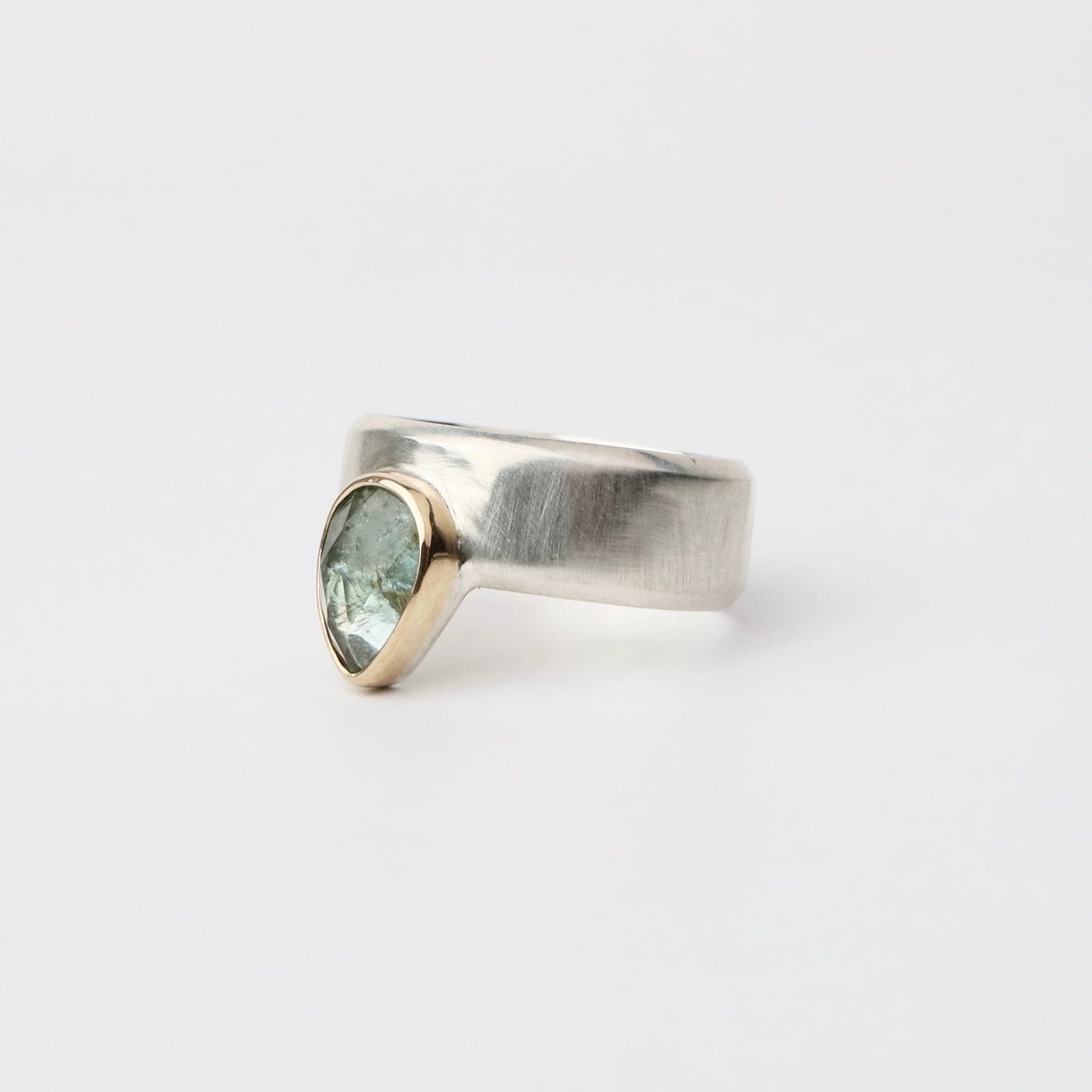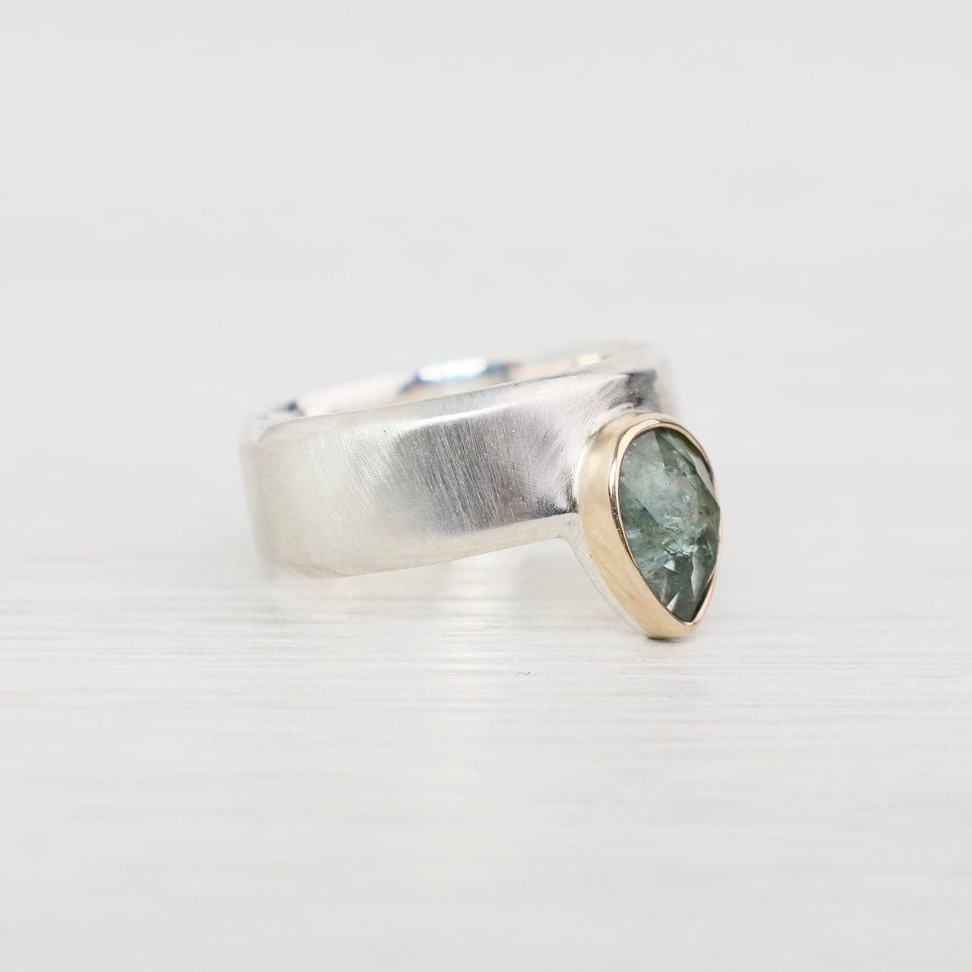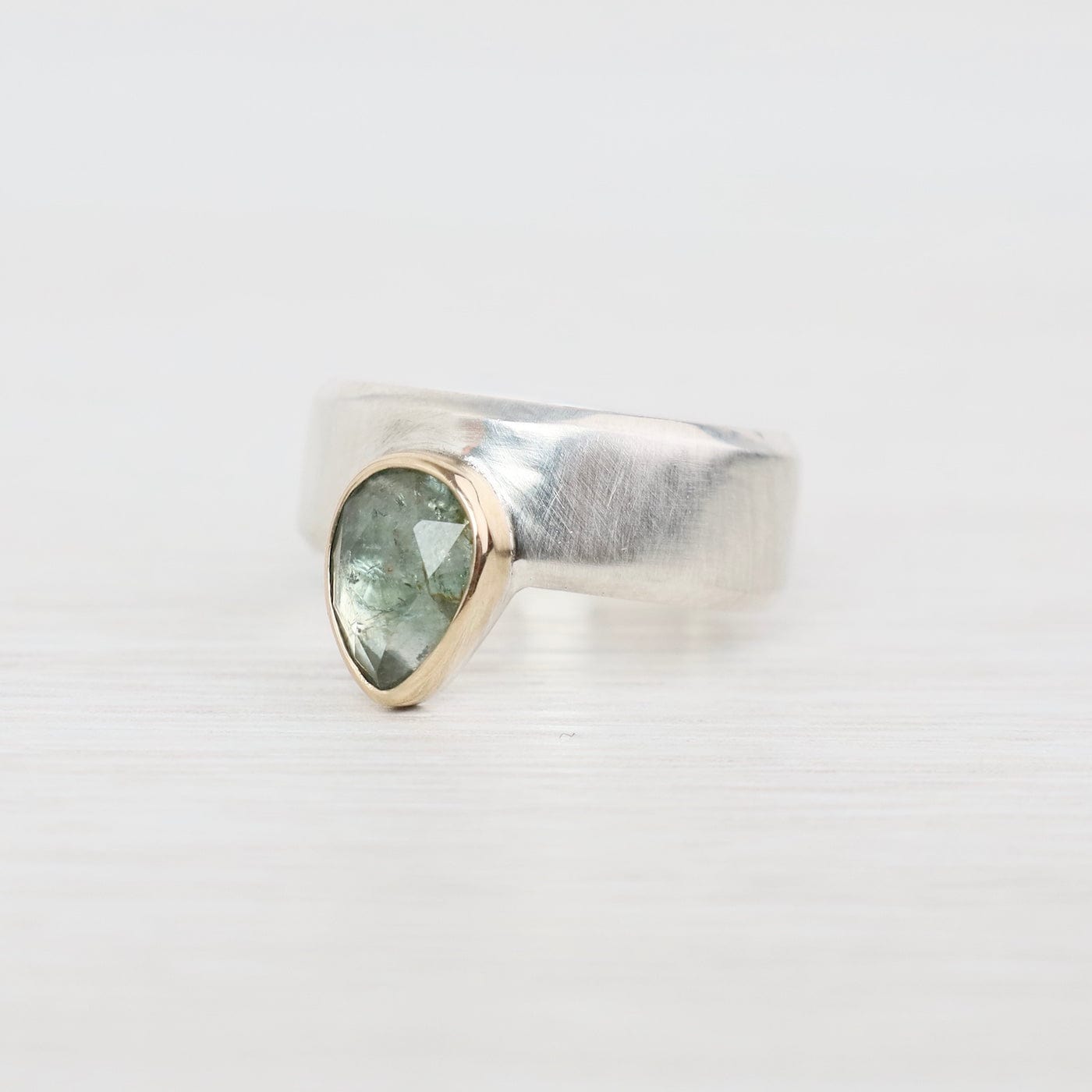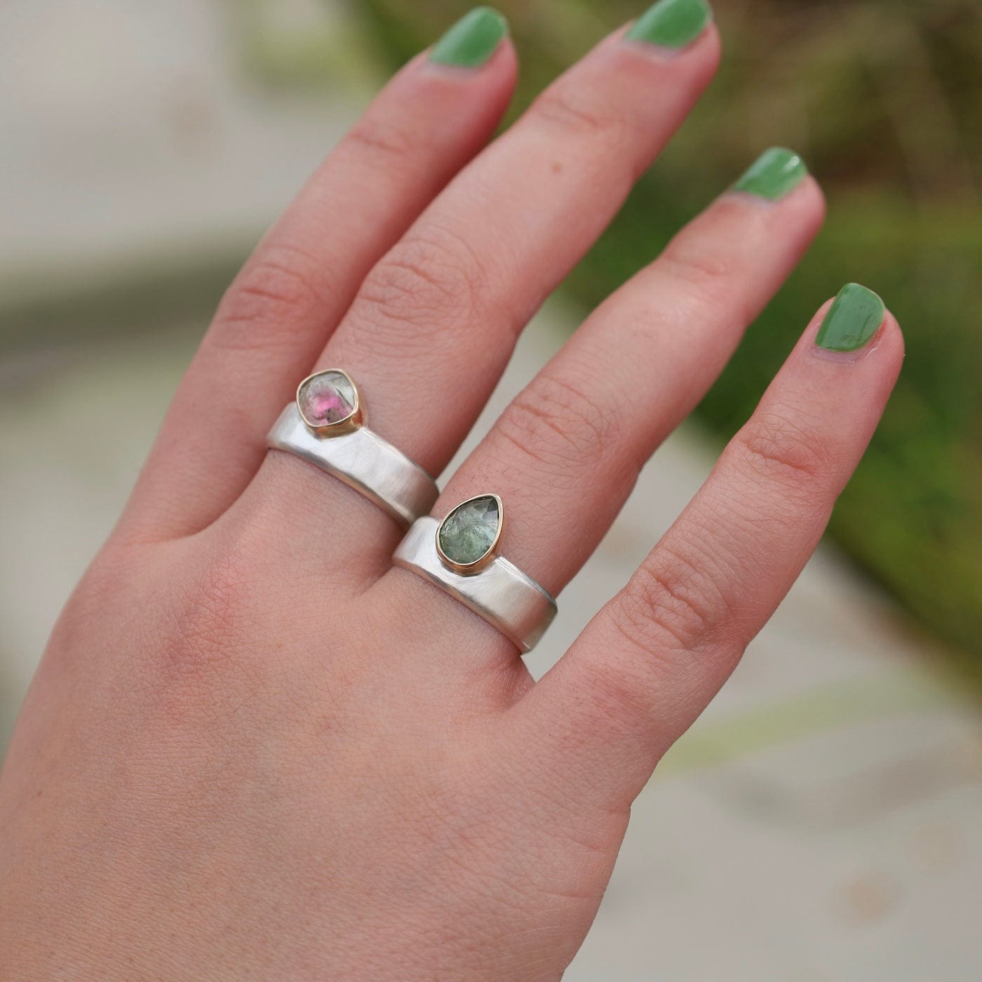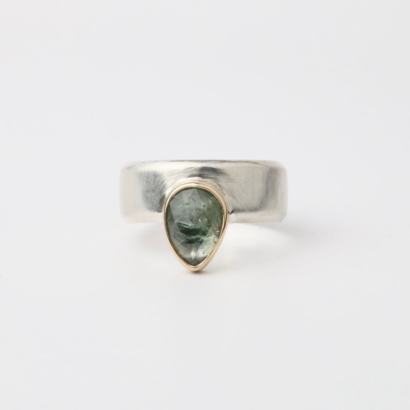 RNG-14K One of a Kind Mesa Ring with Green Tourmaline