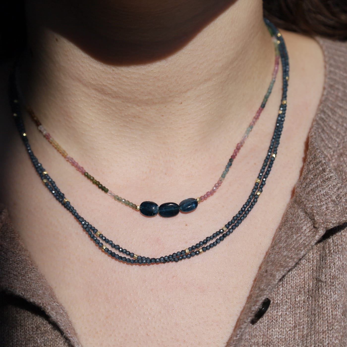 Single Strand Multi Tourmaline with 3 Kyanite Oval Necklace