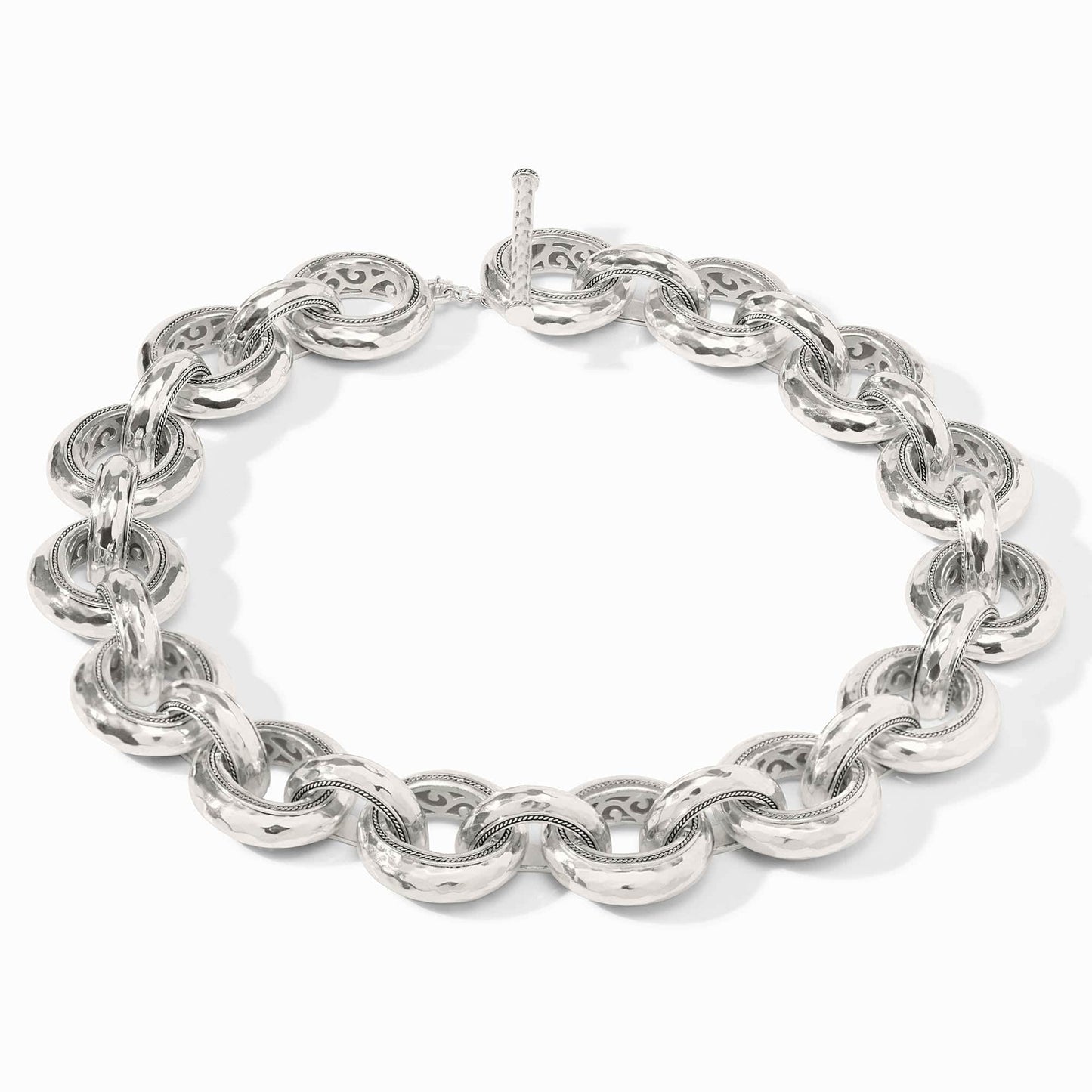 Bold and refined, the Cannes Link Necklace by Julie Vos showcases smooth, interlocking links with subtle textural detailing — a modern classic that elevates any look. Finished in radiant, tarnish-free silver plating, this statement piece is both versatile and timeless, designed to layer beautifully or stand elegantly on its own.