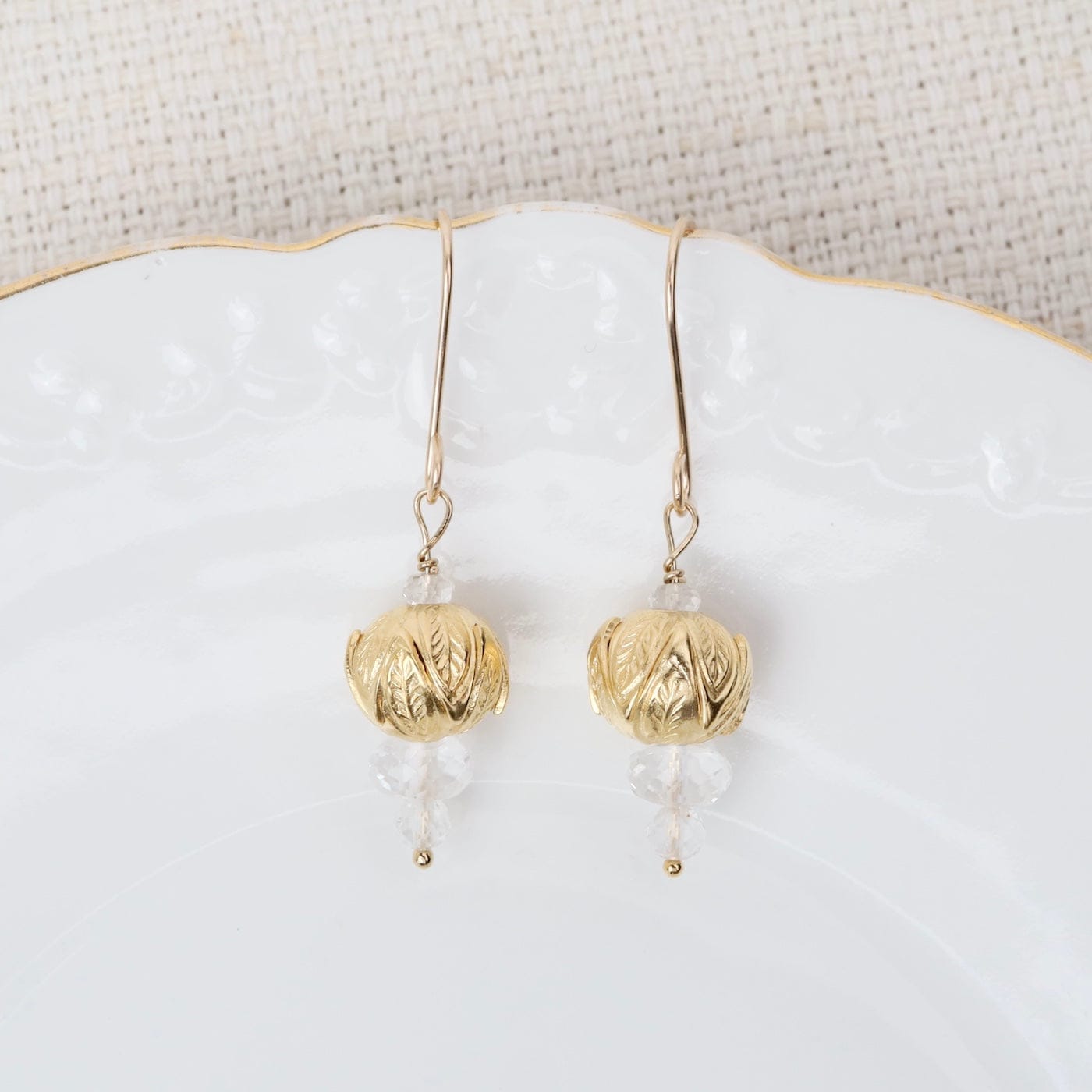 EAR-GF Gold vermeil & clear quartz beads earringsgold fil