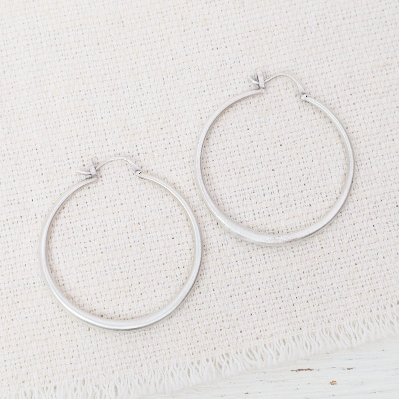 Sleek and timeless, these large tapered hoops are crafted from satin-finished silver with a softly rounded silhouette. Lightweight yet bold, they make an effortlessly chic statement that complements any look.