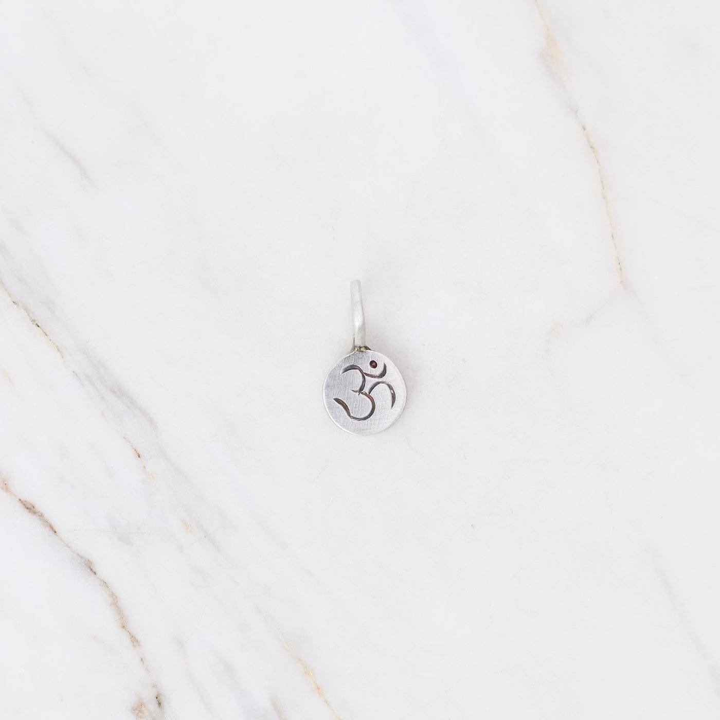 A delicate satin-finished silver disc etched with the Sanskrit symbol “Om,” representing the universal vibration of peace and connection. A meaningful addition to any charm collection.