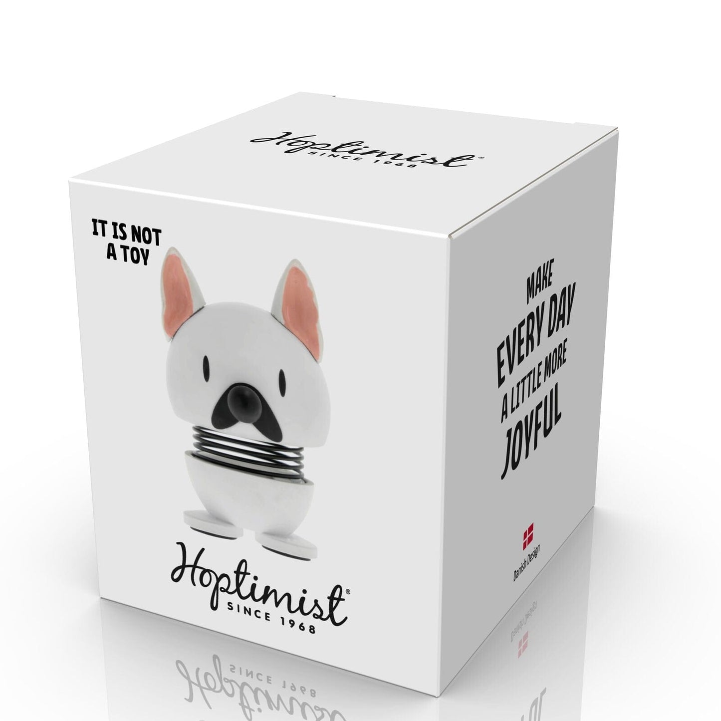 Charming and a little stubborn. The French Hoptimist bulldog is as white as whipped cream – and just as irresistible. It rewards you with small, joyful hops the moment you give it a bit of loving attention.
