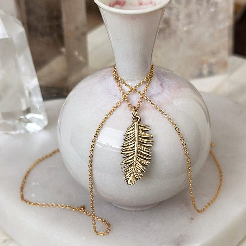 Inspired by the towering redwoods that surround the Mill Valley studio, this pendant captures the spirit of resilience and quiet strength. The charm was cast from an actual redwood leaf, preserving every delicate ridge and curve. On the back, subtly woven into the design, reads the mantra “strength in the sacred”—a gentle reminder of the grounding power found in nature.