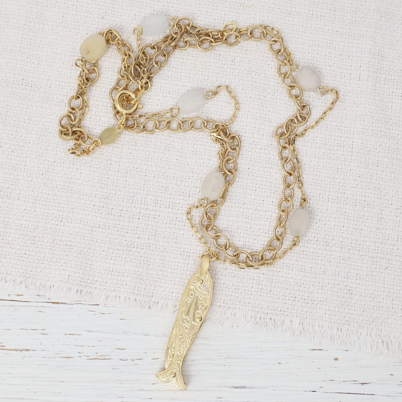 There’s a quiet meaning behind this piece—the fish symbol has long been a sign of faith, and here it’s designed in a way that feels both modern and timeless. The layered chains add just enough dimension, while the elongated pendant gives it a graceful, eye-catching finish.