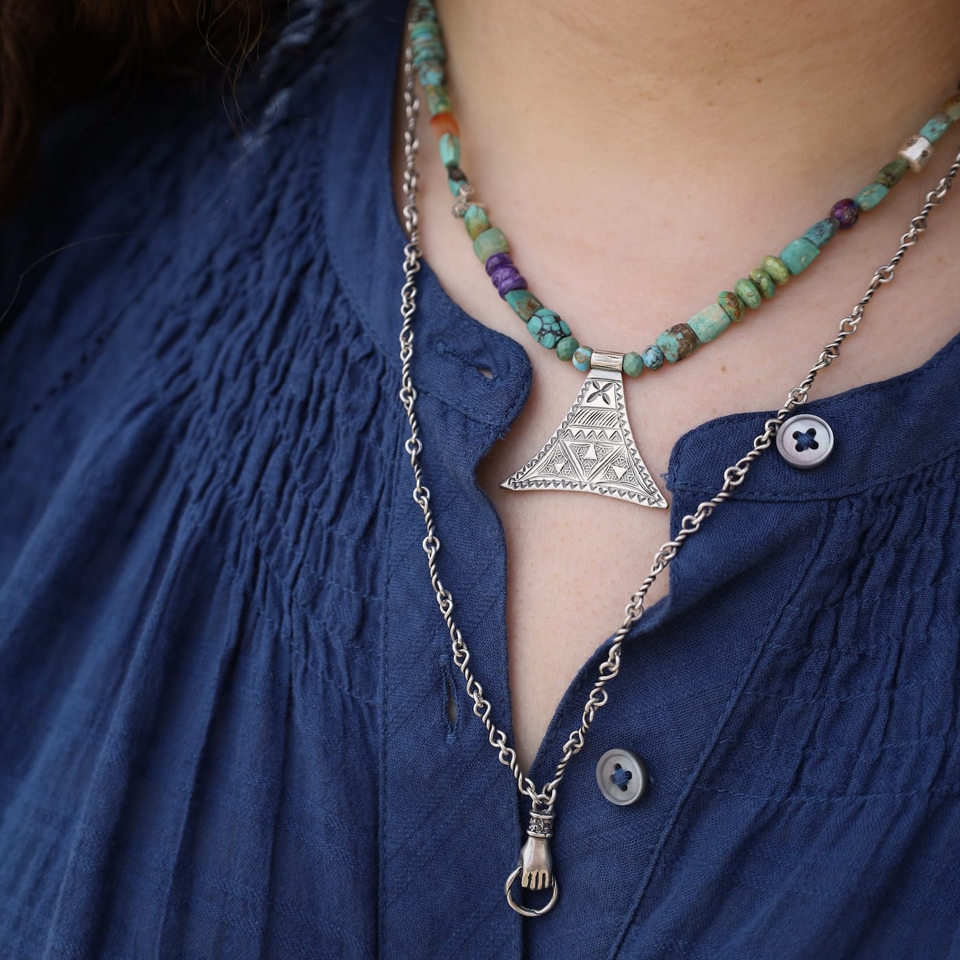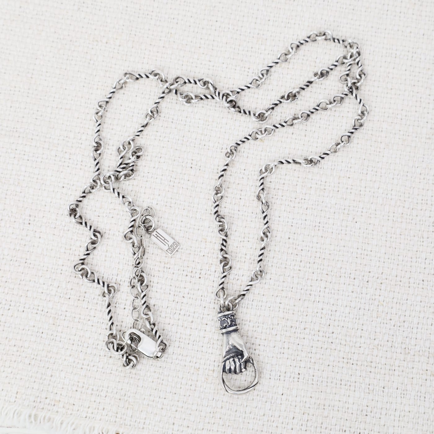 A powerful symbol of connection, this vertical “Never Let Go” necklace is designed to be both meaningful and enduring. The clasped hand represents love that remains—through distance, time, and everything in between—offering a quiet reminder that we are always linked to those who matter most.