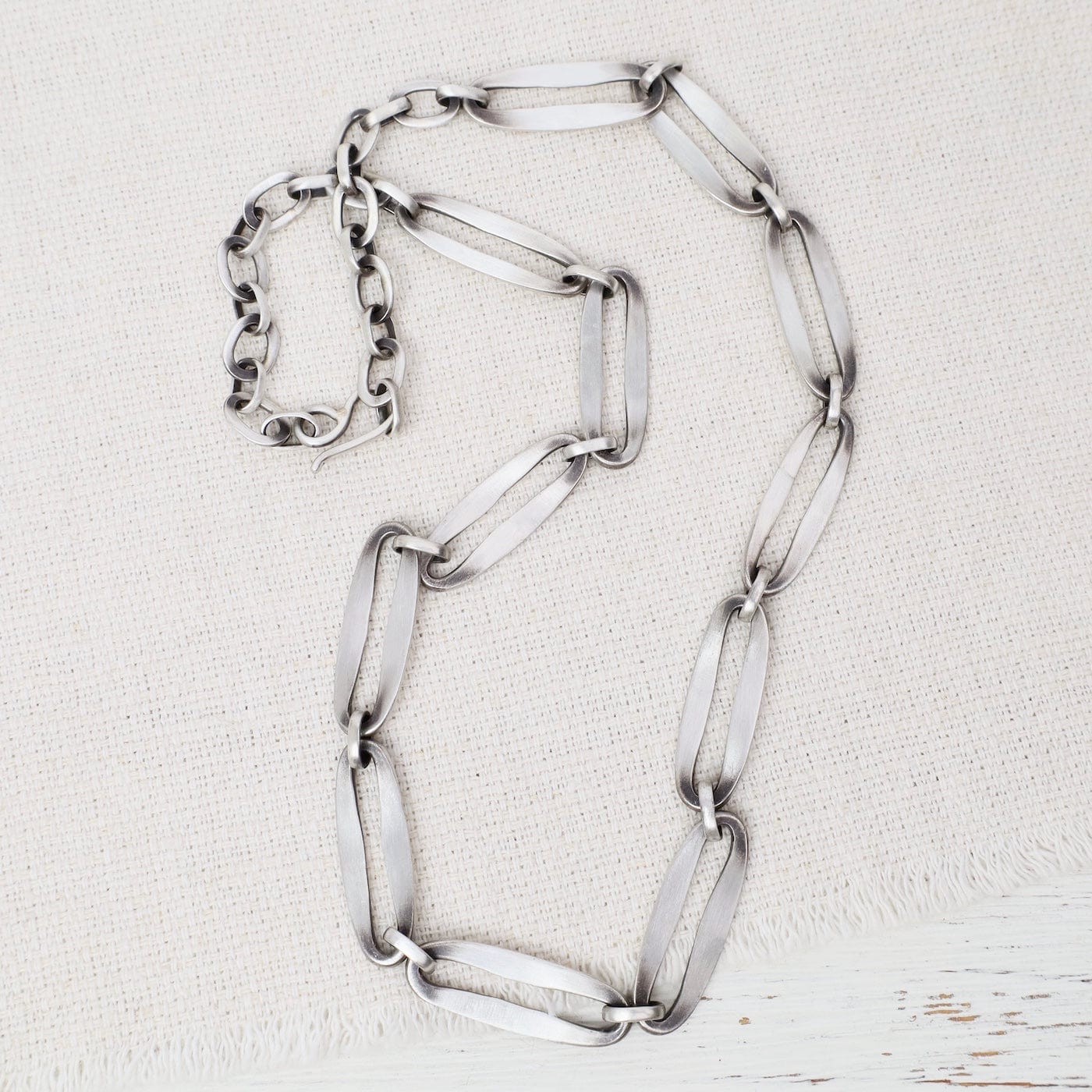 A beautifully textured necklace featuring hand-hammered oval links in sterling silver. This timeless design is effortlessly chic—perfect worn alone or layered with your favorite pendants.