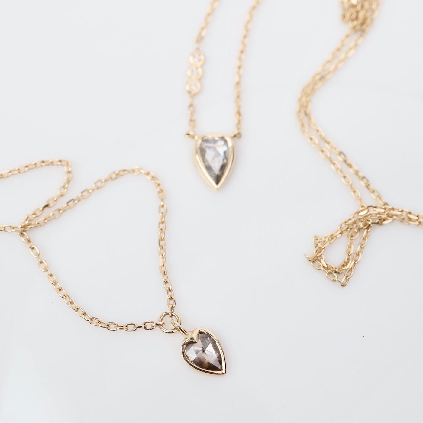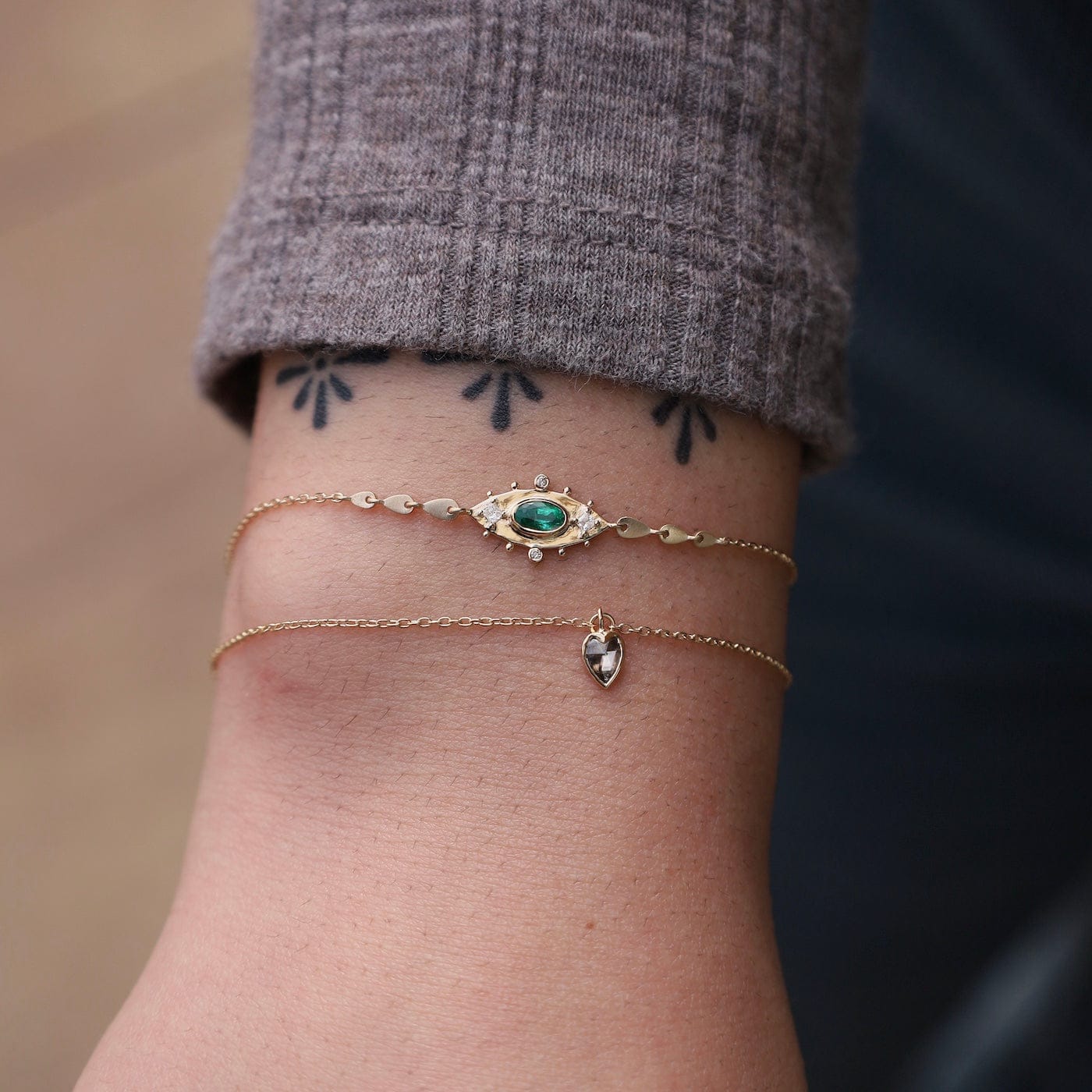 A whisper of gold and a hint of sparkle—this dainty bracelet features a small rose-cut diamond heart, delicately suspended from a fine 14k gold cable chain. Subtle and romantic, it’s a timeless piece that adds a touch of elegance to any stack or stands beautifully on its own.