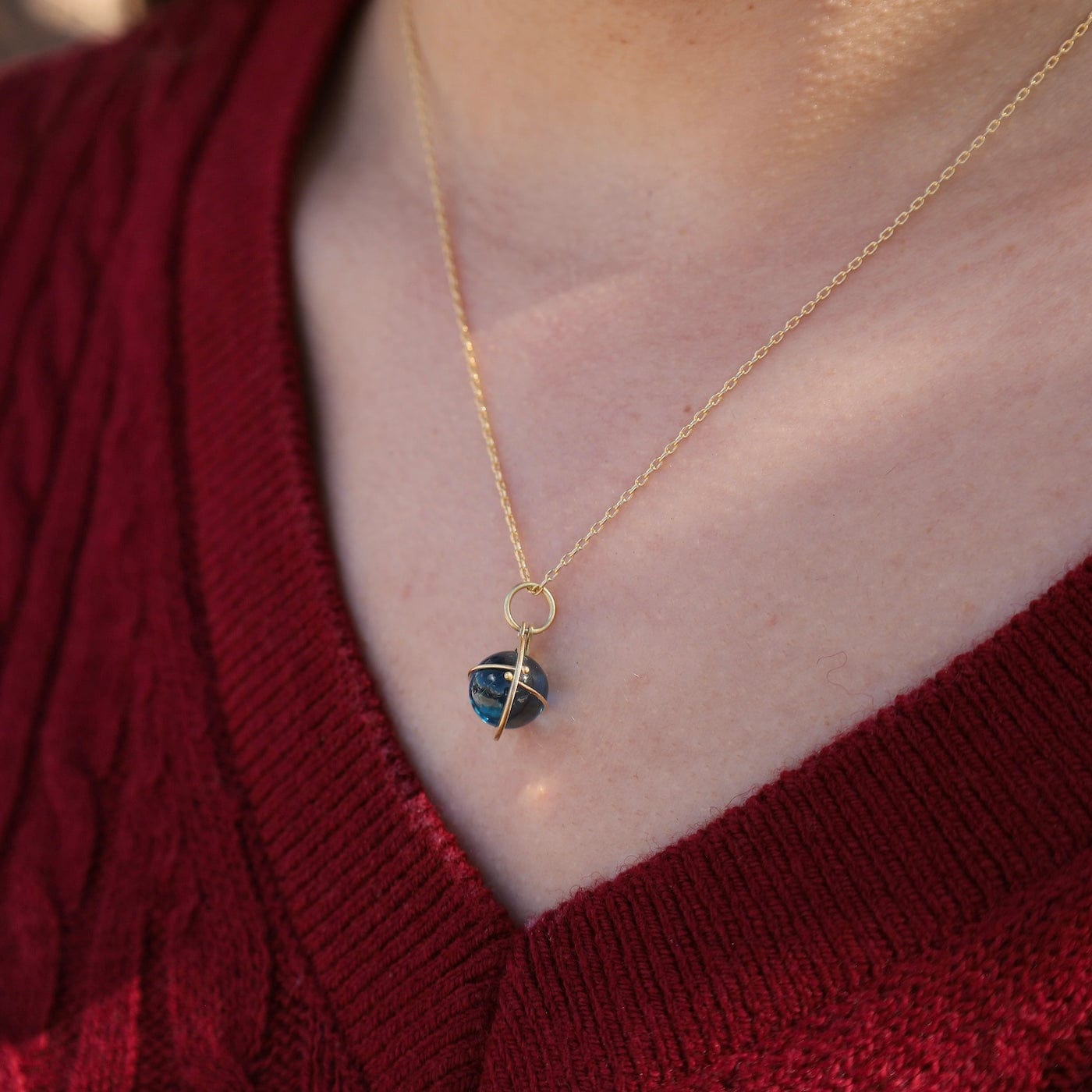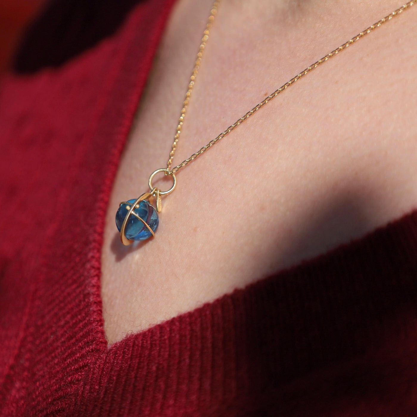 Captured London Blue Topaz Orb Pendant Necklace