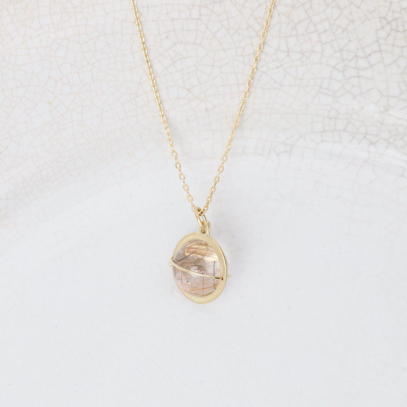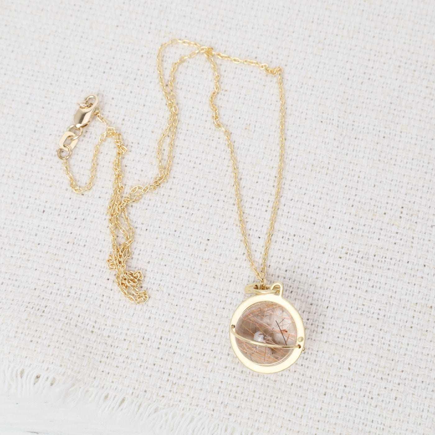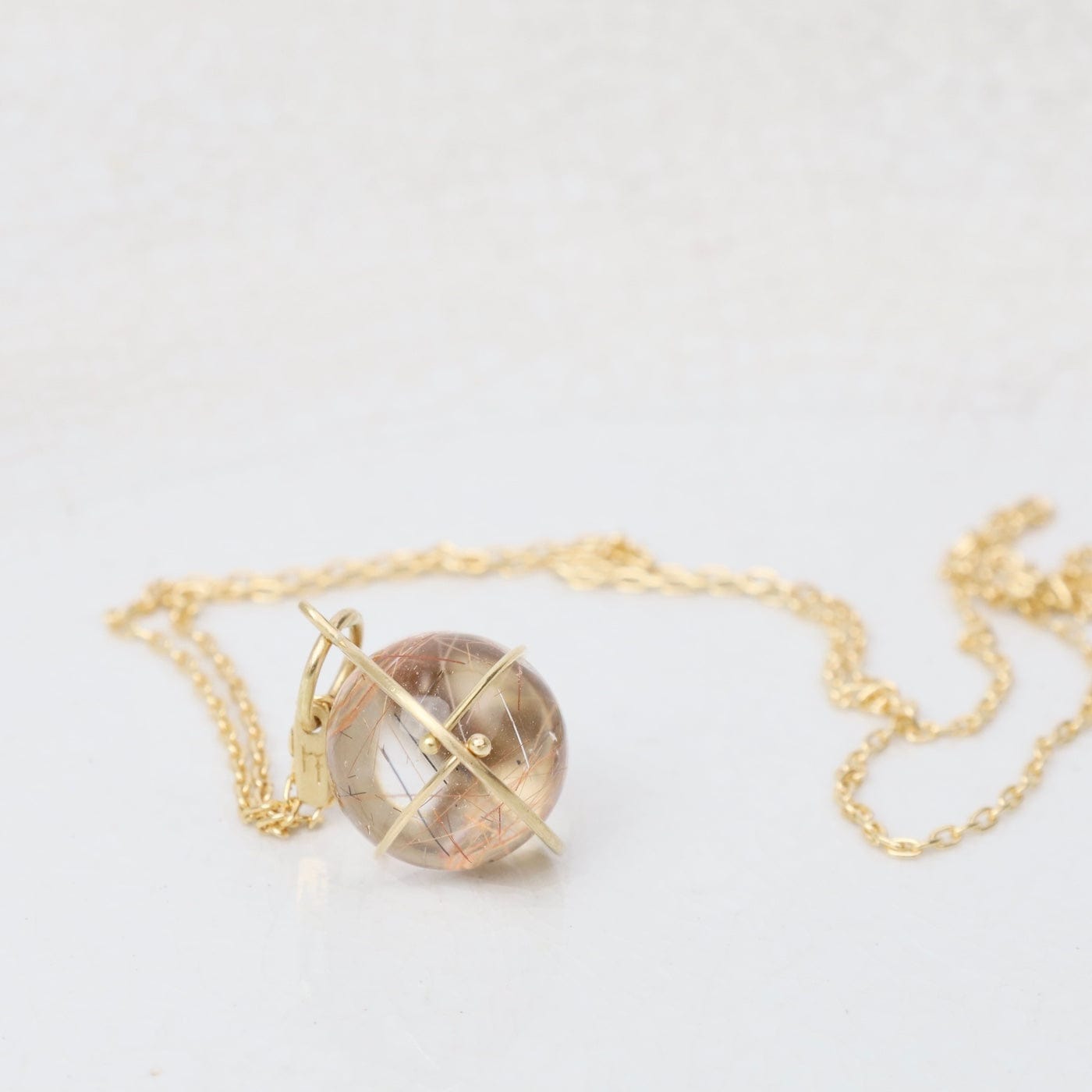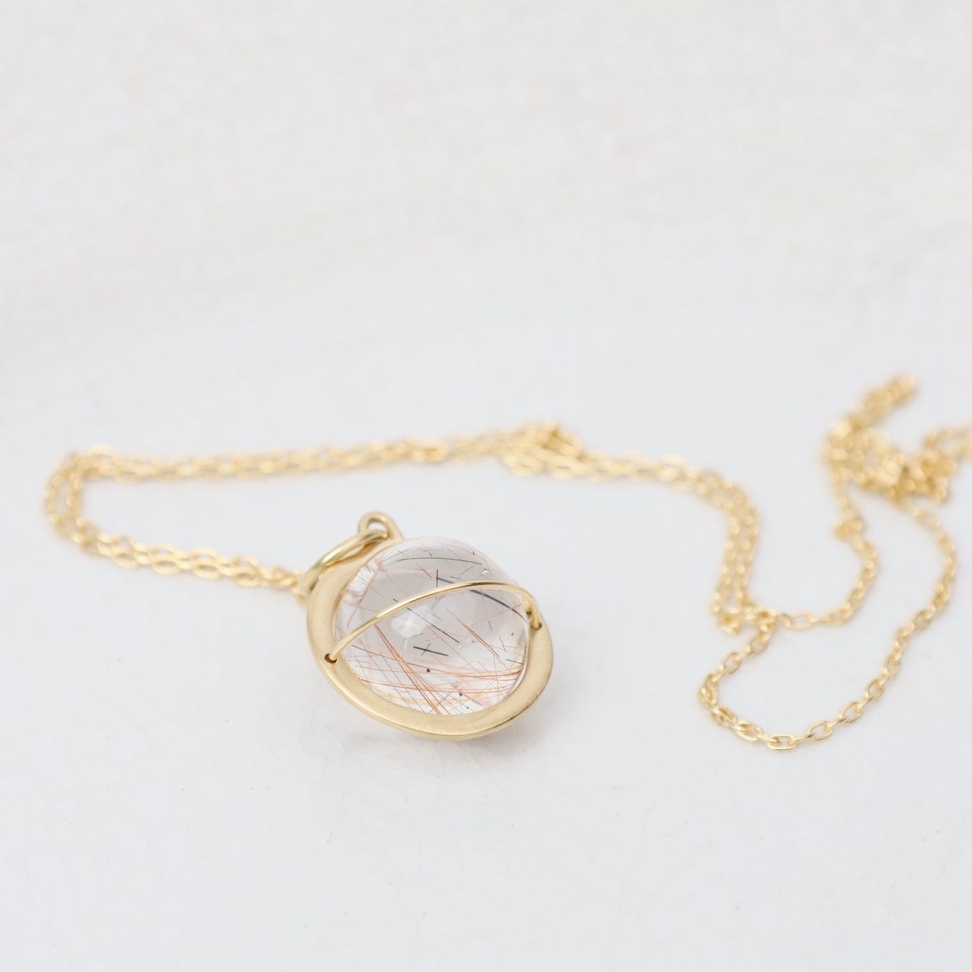 The must-have necklace from Hilary’s Captured Collection—a timeless piece that blends natural beauty with sculptural elegance. A golden rutilated quartz orb, alive with delicate golden threads, is held securely within Hilary’s signature 14k gold Captured setting. Each piece feels both modern and enduring, making it an effortless everyday treasure.
