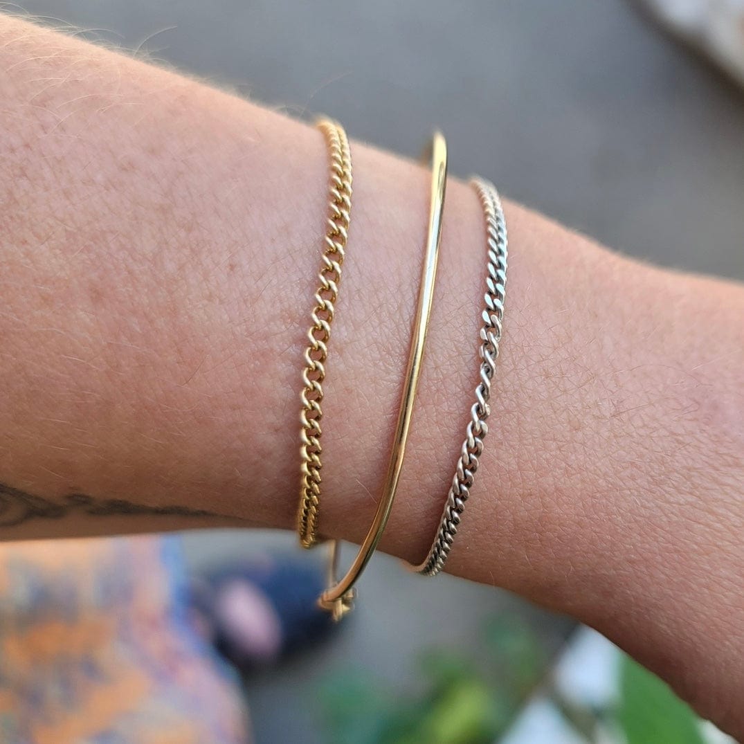 Visit our stores in Ardmore, Princeton, or Saucon Valley store to get your newest accessory that you never have to take off! "Permanent" jewelry is created using a chain that is welded closed around your wrist (or ankle or neck) and does not have a clasp. It is intended to be worn for as long as you'd like to keep it! The process is quick and painless; a small jump ring is welded with a tiny "zap" to close the chain and you're ready to rock your new "permanent" jewelry.
