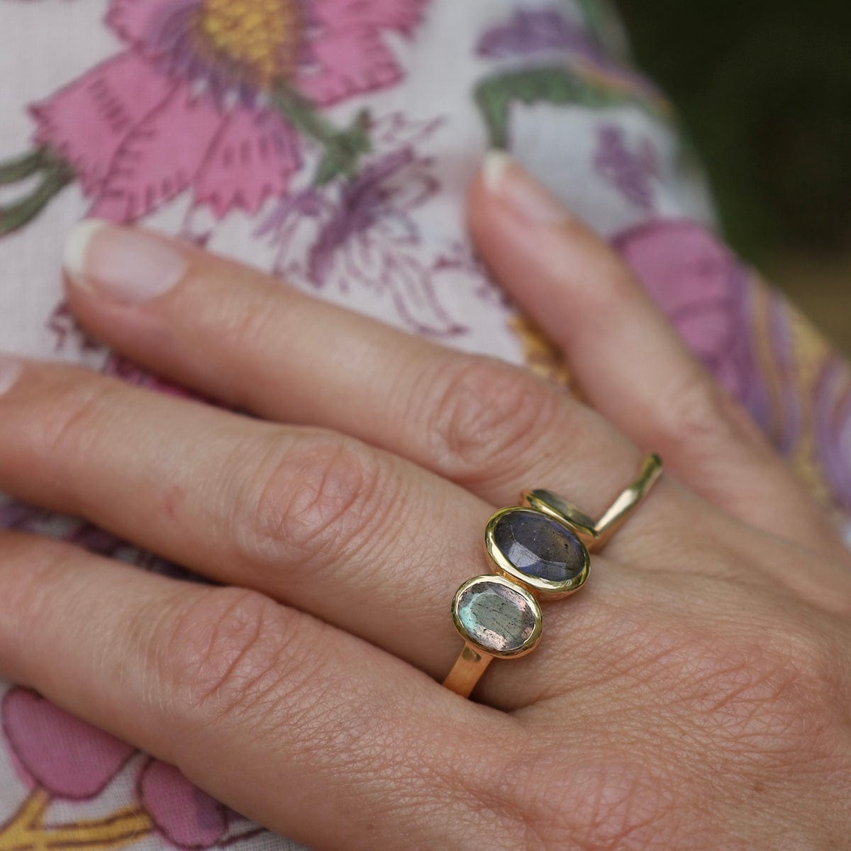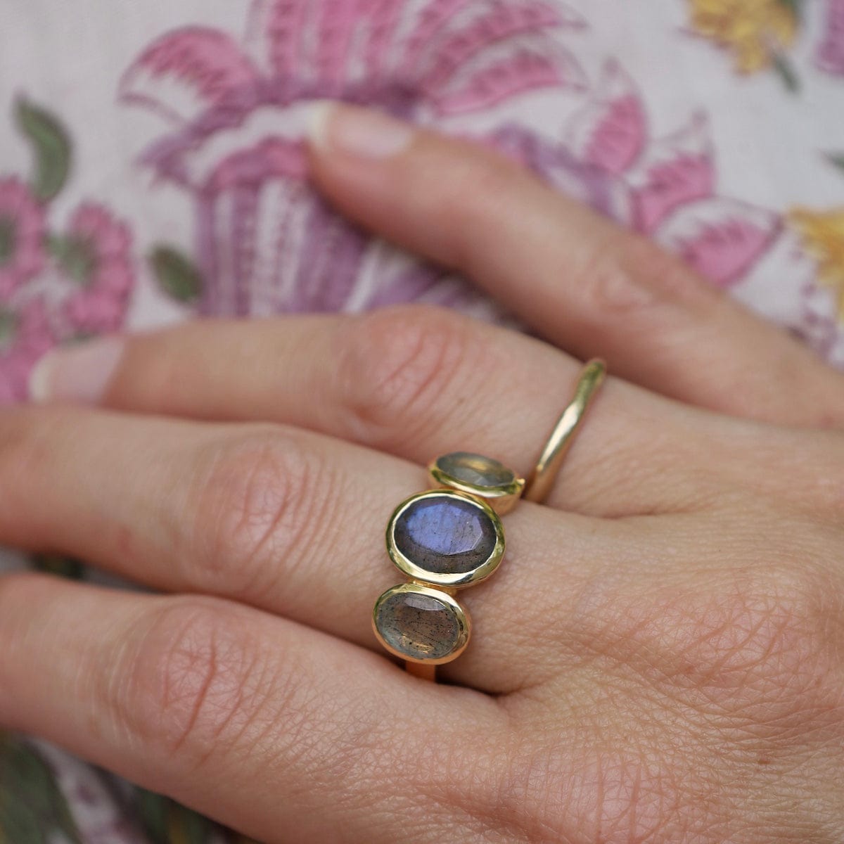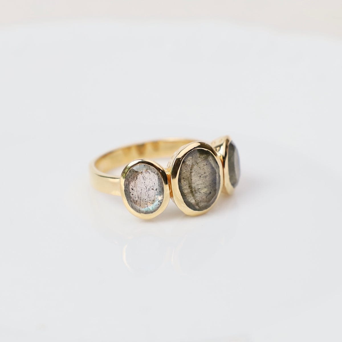 RNG-VRM 24k Gold Vermeil 3 Stone Ring - Labradorite