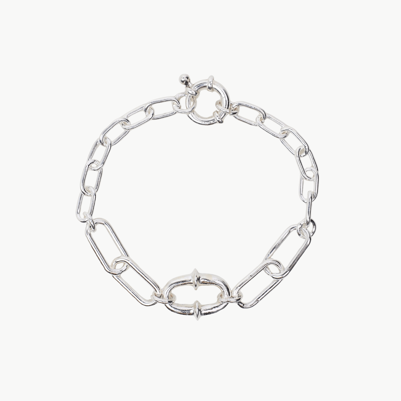 This chic and versatile bracelet features an oval center link that adds a touch of elegance to any look. Made from high-quality sterling silver, this bracelet is both durable and stylish.