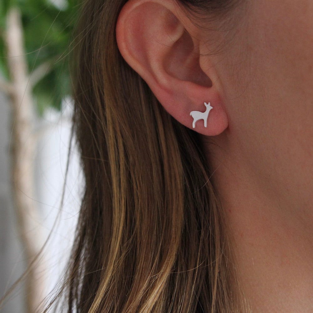 Wee Deer Studs - Brushed Sterling Silver