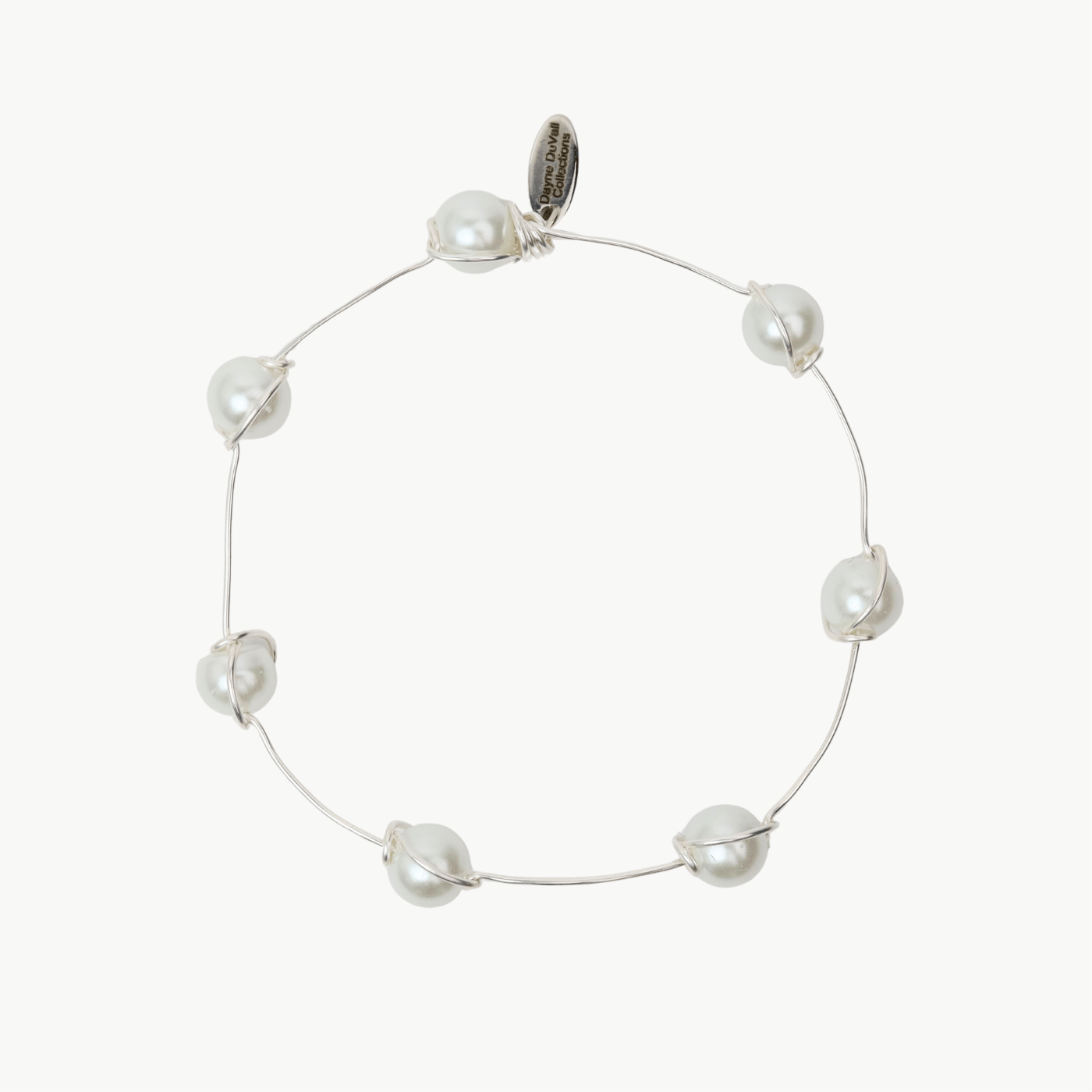 Stack Of Three 8mm Glass Pearl Signature Bangles Bracelet