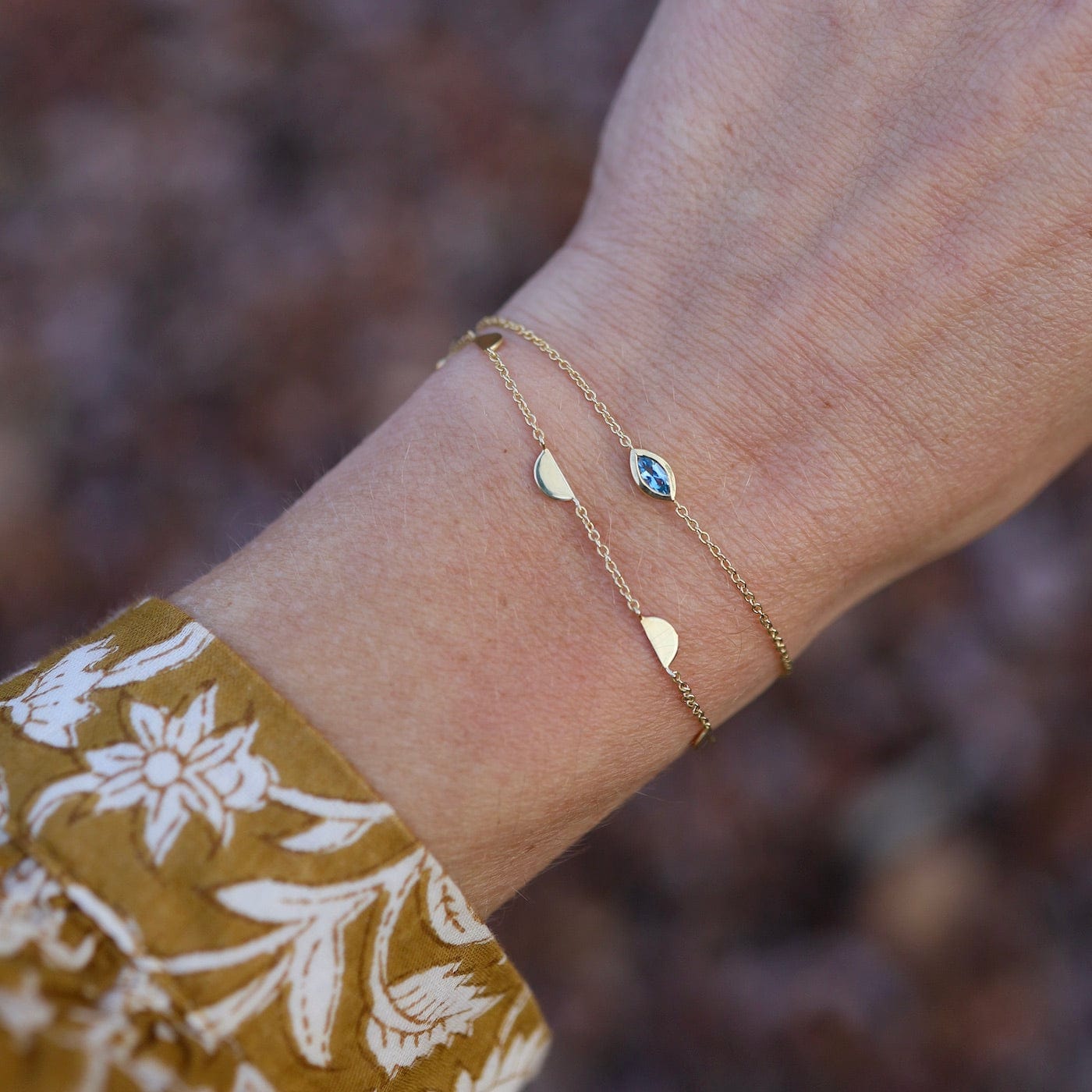 This Gold Vermeil Marquis Blue Topaz Solitaire Bracelet is a great basic piece with a gorgeous sparkle! Perfect on its own, it can also be worn with other of your favorite bracelets!