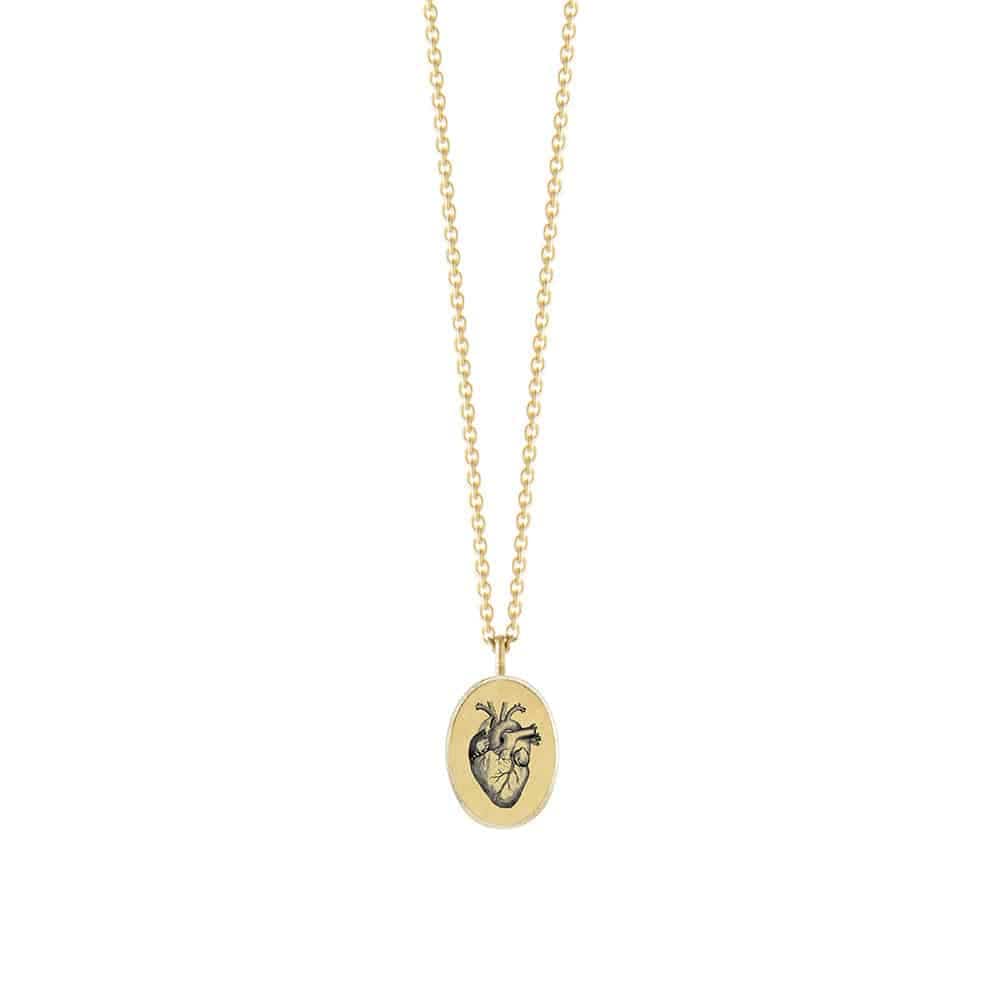Adorn yourself with this exquisite fine gold vermeil necklace, featuring a delicate pendant etched with an intricate heart motif symbolizing Love and Bravery.