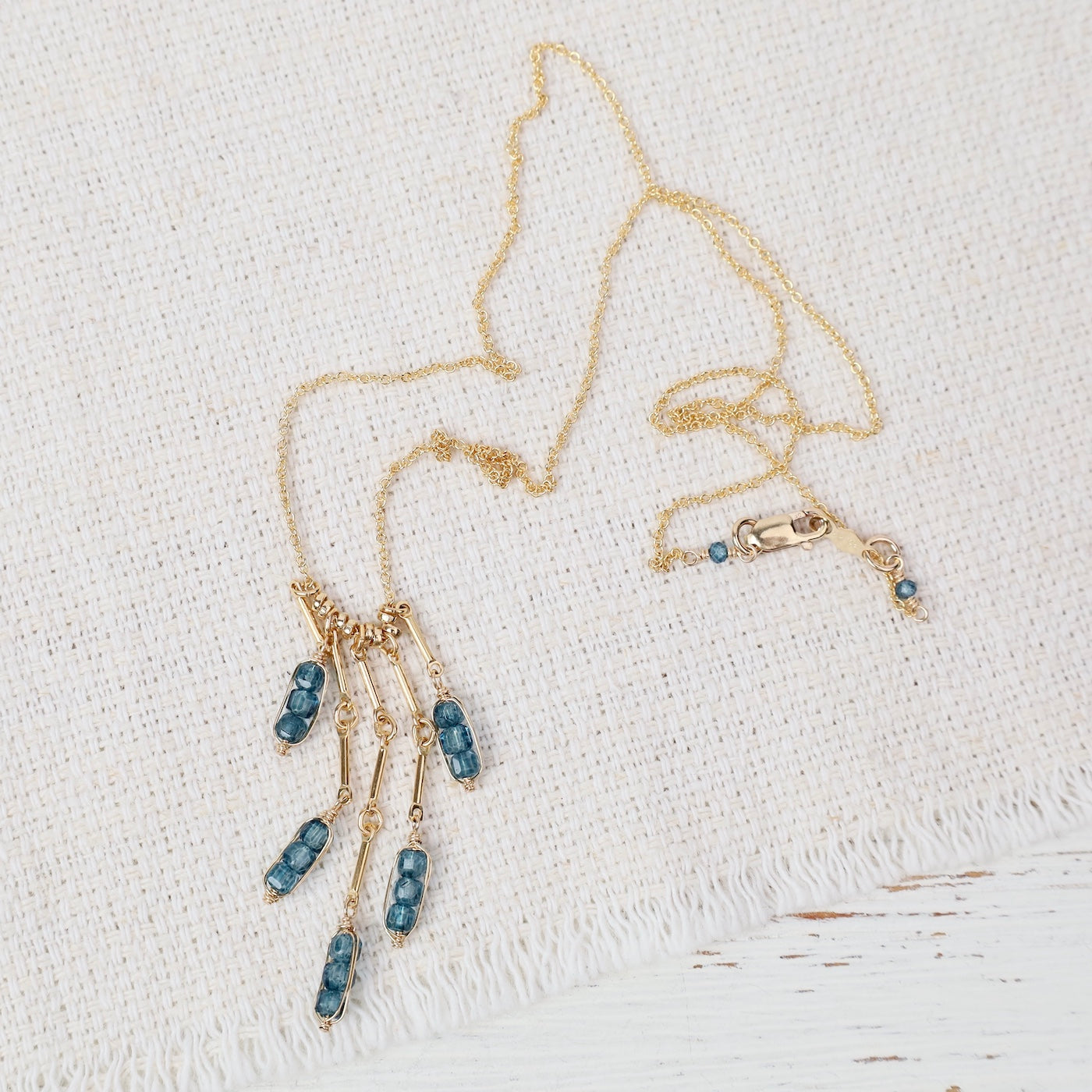 Dainty London Blue Quartz Necklace with 14k gold fill and cascading London blue quartz drops. Lightweight, elegant, and perfect for layering or wearing solo.