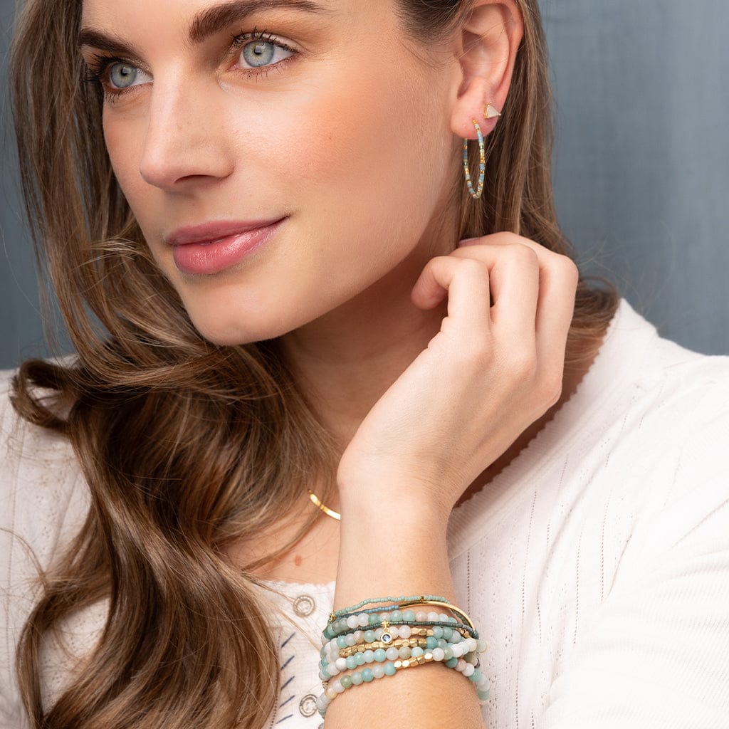 Sleek Miyuki Delica beads create vibrant pieces in colorful hues. Mix and match bracelet stacks and earrings for a look that is fun and modern.