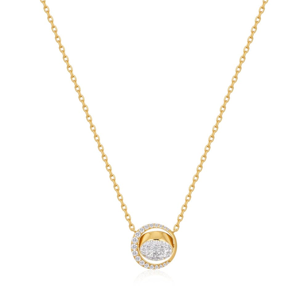 Elegance reimagined through light and mystic symbol, this transformative necklace features a dual-phase moon pendant with a fixed crescent offering both pavé brilliance and a smooth reverse. Its revolving center shifts between an engraved evil-eye talisman and a fully pavé surface—revealing two distinct expressions of celestial sparkle and subtle mystique. Designed for those who wear their magic with intention and effortless style, it invites you to choose your story with every turn.