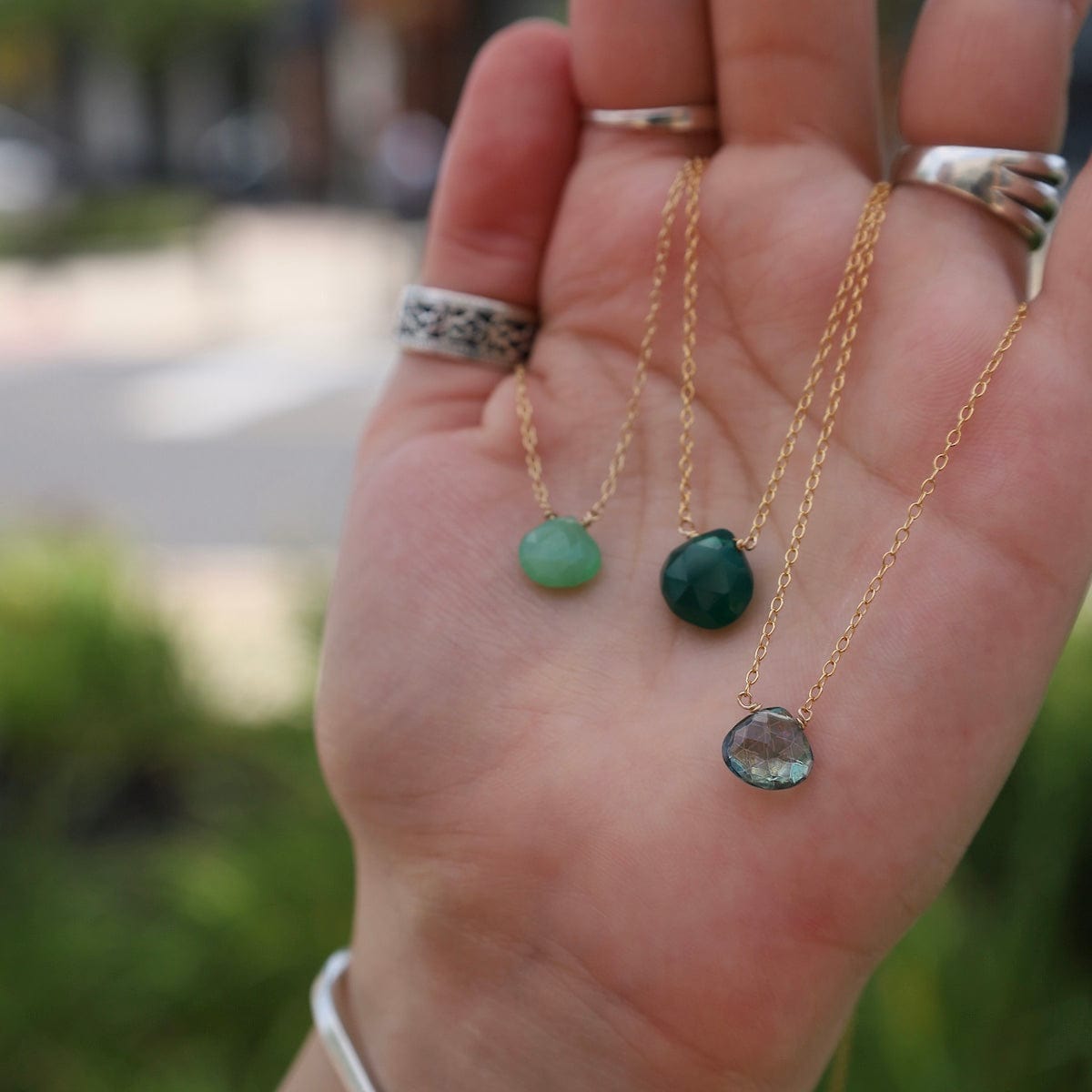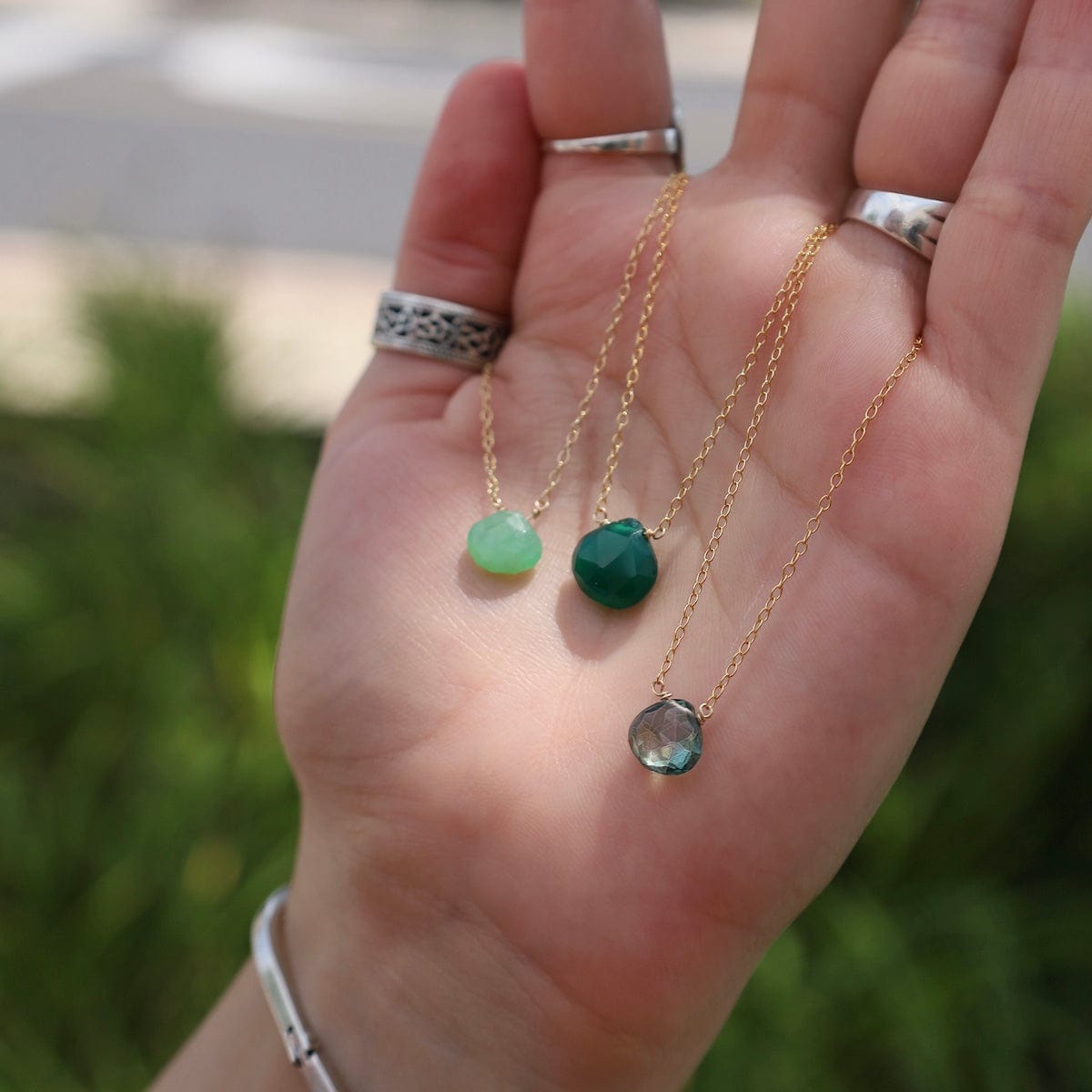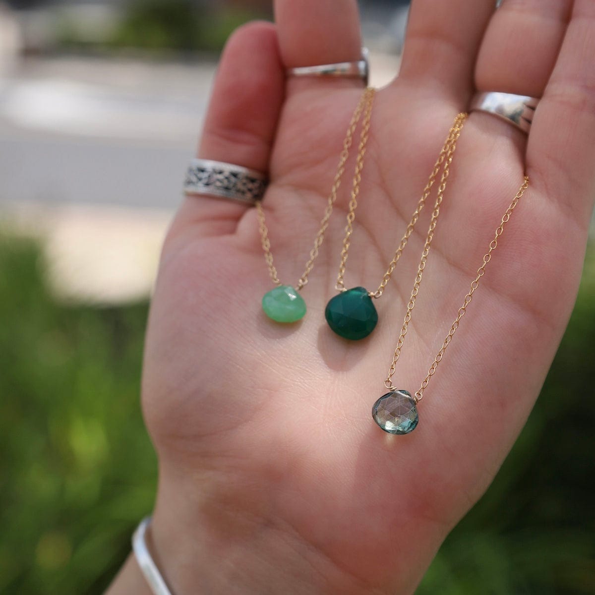 This dainty pendant necklace is the perfect way to add a touch of color to your look without going overboard.