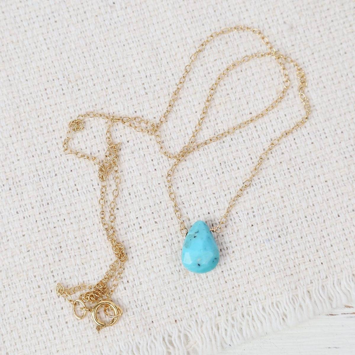 Gold Filled Chain with Single Turquoise Brio Necklace
