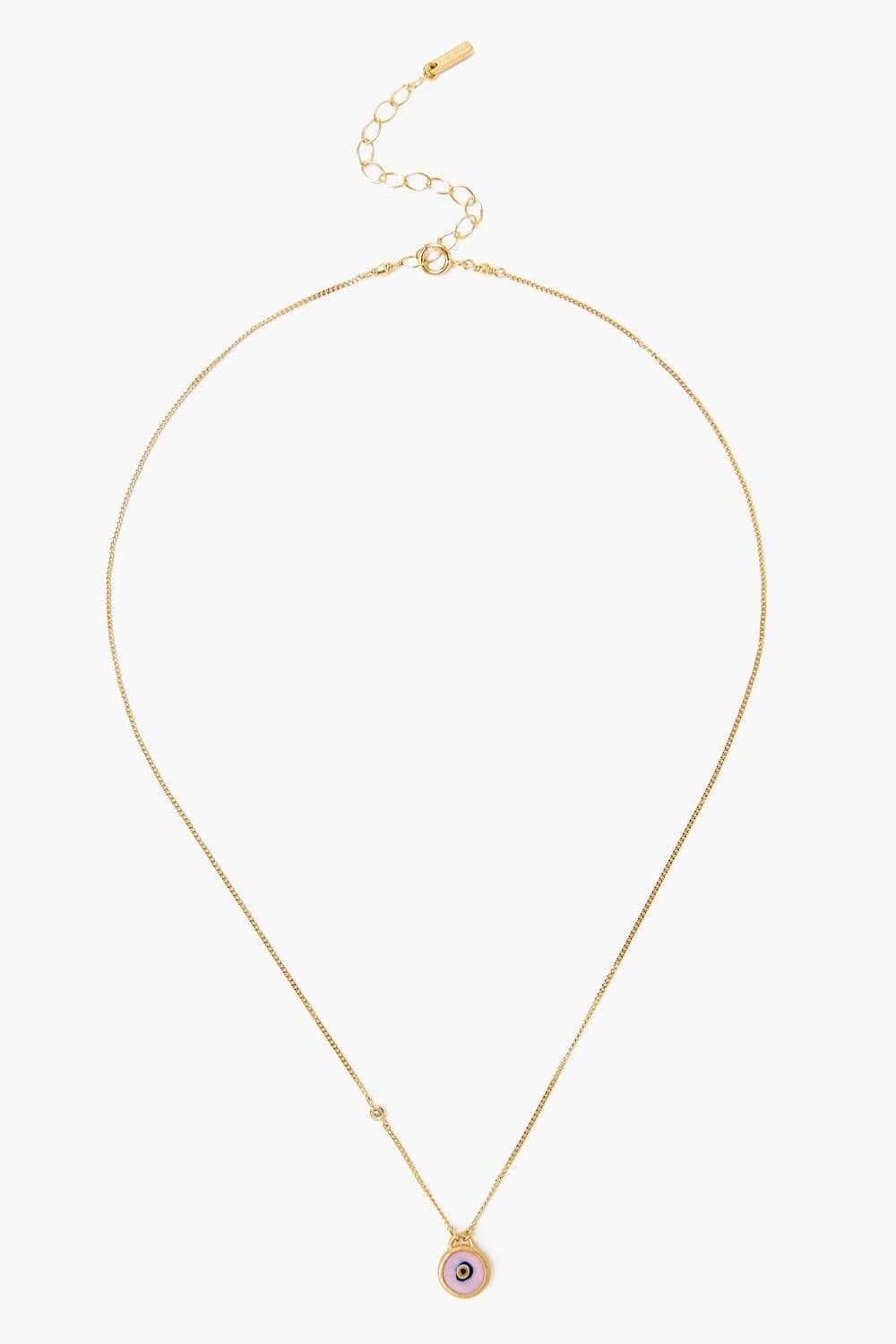 This delicate handmade necklace features a traditional Turkish hand-rolled pink clay evil eye on an 18k gold plated sterling silver chain with champagne diamond inlay. Wear this simple pink evil eye necklace alone for a classic look, or layer it with longer necklaces.
