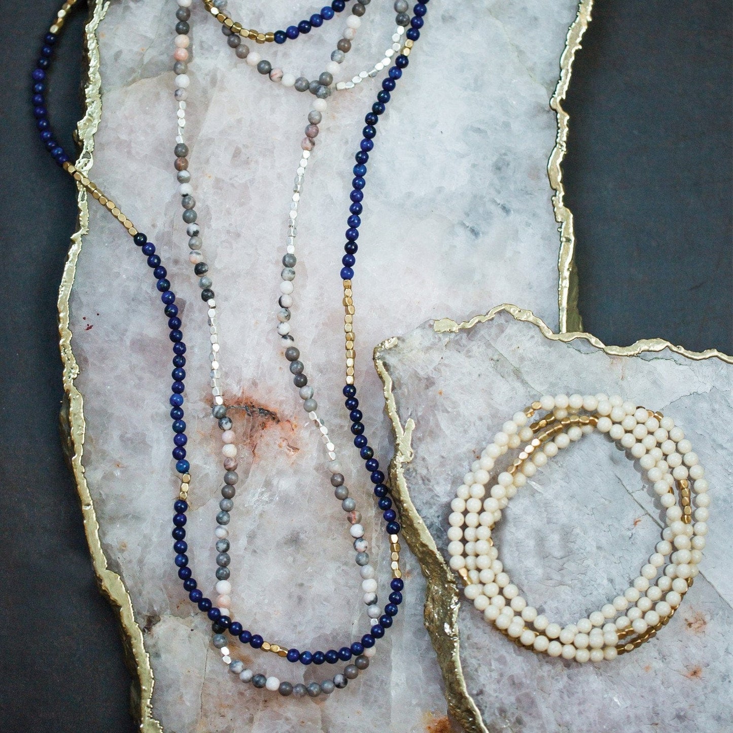 White fossil jasper : The supreme nurturer. Alleviates stress and promotes tranquility. Helps find moments of beauty in the ordinary. Stimulates the imagination. Brings determination and tenacity. Guides the wearer down their true path.