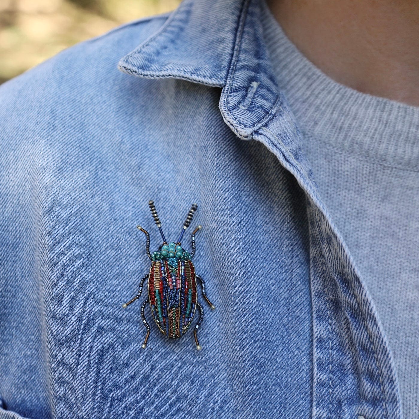 Inspired by the rare and iridescent Snowdon beetle of Wales, this stunning brooch captures the insect’s vivid rainbow hues in exquisite detail. Once found only on the slopes of Mount Snowdon, this endangered beetle lives on through Trovelore’s meticulous artistry—each stitch celebrating nature’s brilliance and fragility.